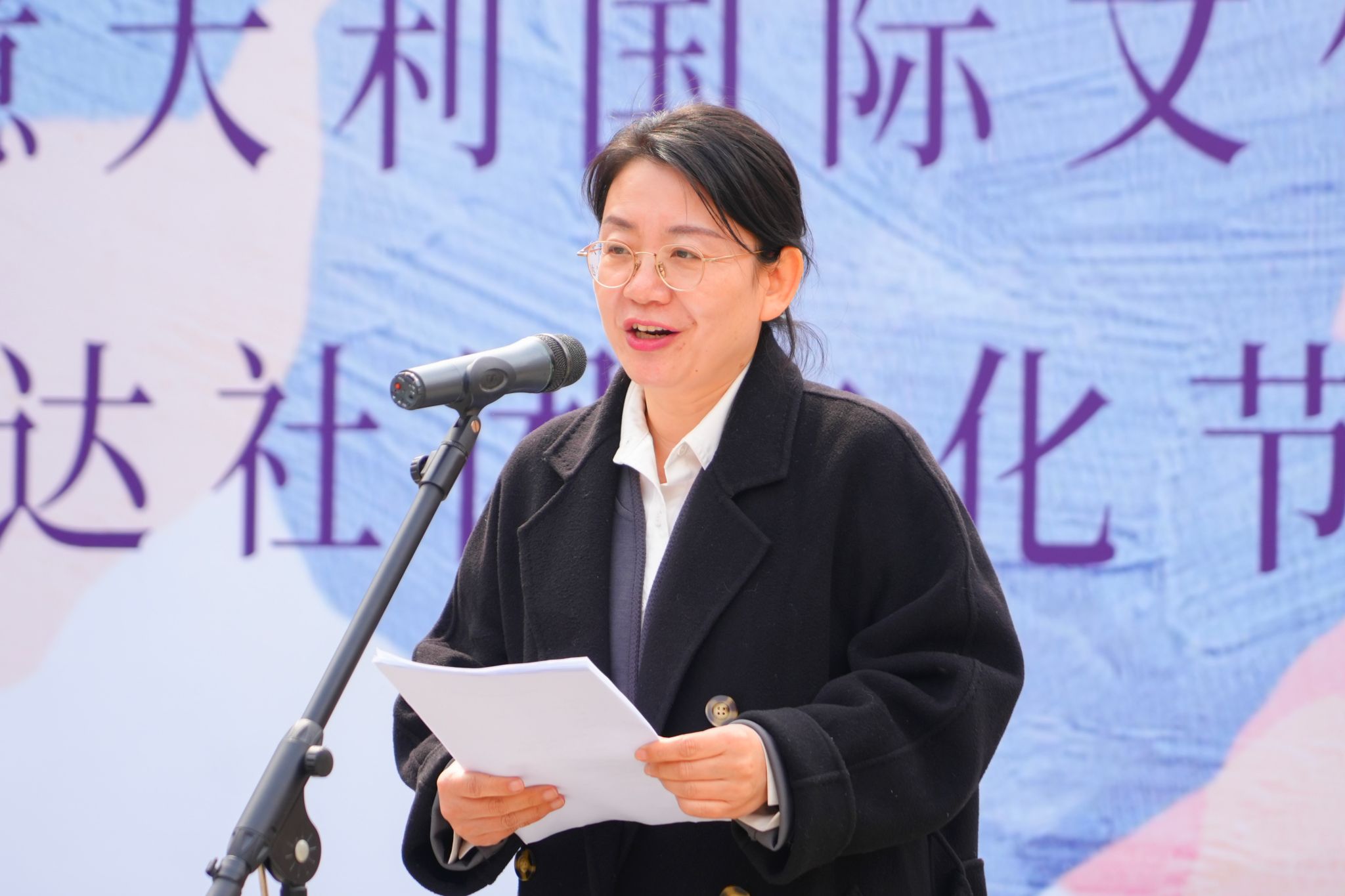 开幕式正式拉开帷幕,国际交流处处长顿雁峰讲话,她指出,此次是学校首次将校园国际文化节与学生社团文化节相结合,旨在促进多元文化在校园的交融共生,激发大家对不同文化的探索热情,并详细介绍了此次文化节的各项活动安排,让大家对后续丰富的文化体验充满期待。摩登公社社长作为学生社团代表发言,分享了学生社团在校园文化建设中的积极作用以及对此次文化节的展望,表达了同学们对此次文化节的期待之情。