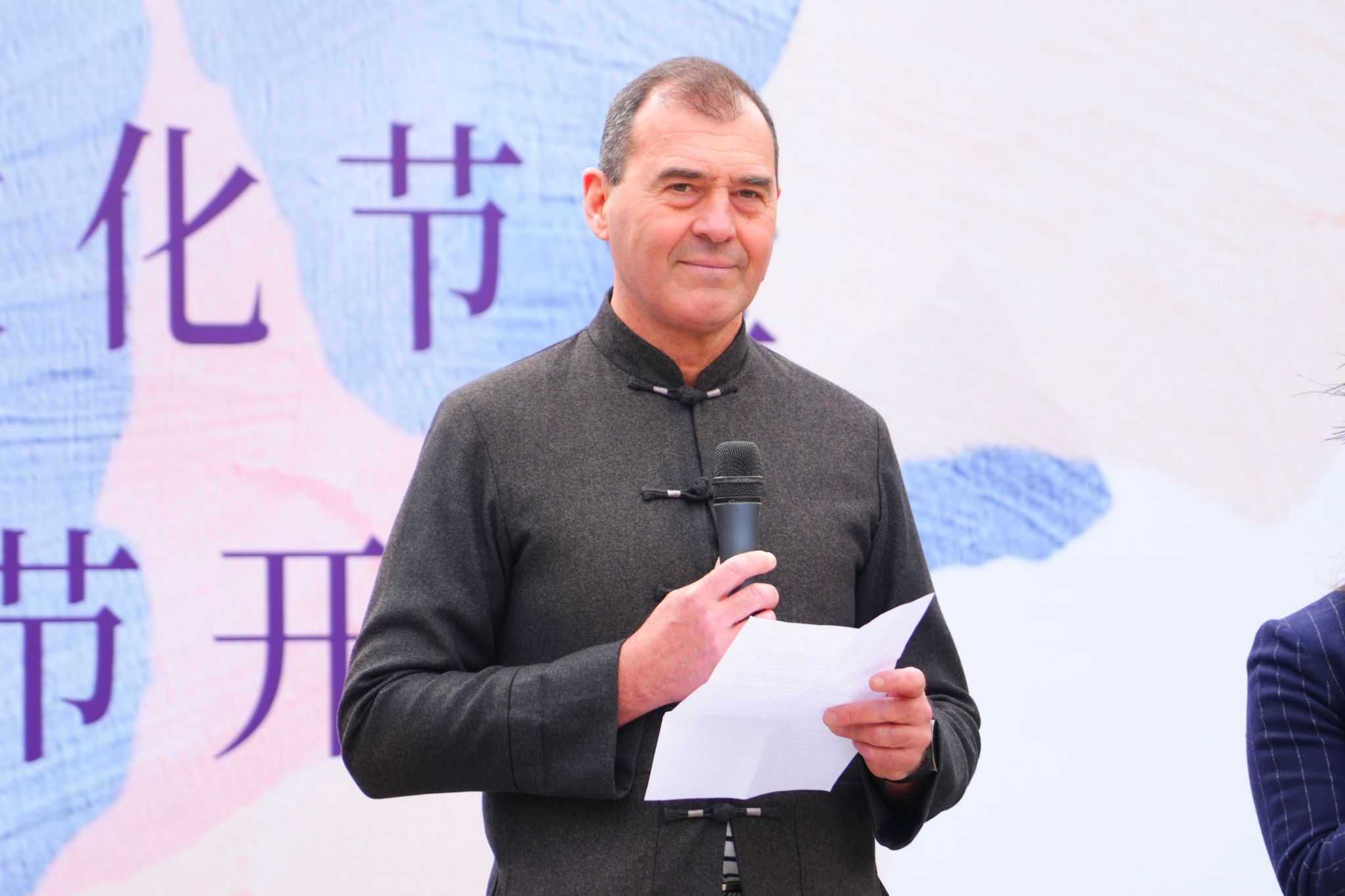 菲利波·菲利浦教授发表讲话,他表达了对此次来到学校与师生见面交流的喜悦之情,很开心能在讲座上跟大家分享意大利艺术教育的理念与特色,希望通过今天的文化节,两校之间可以深化合作,增强师生交流,为中意交流做出贡献。