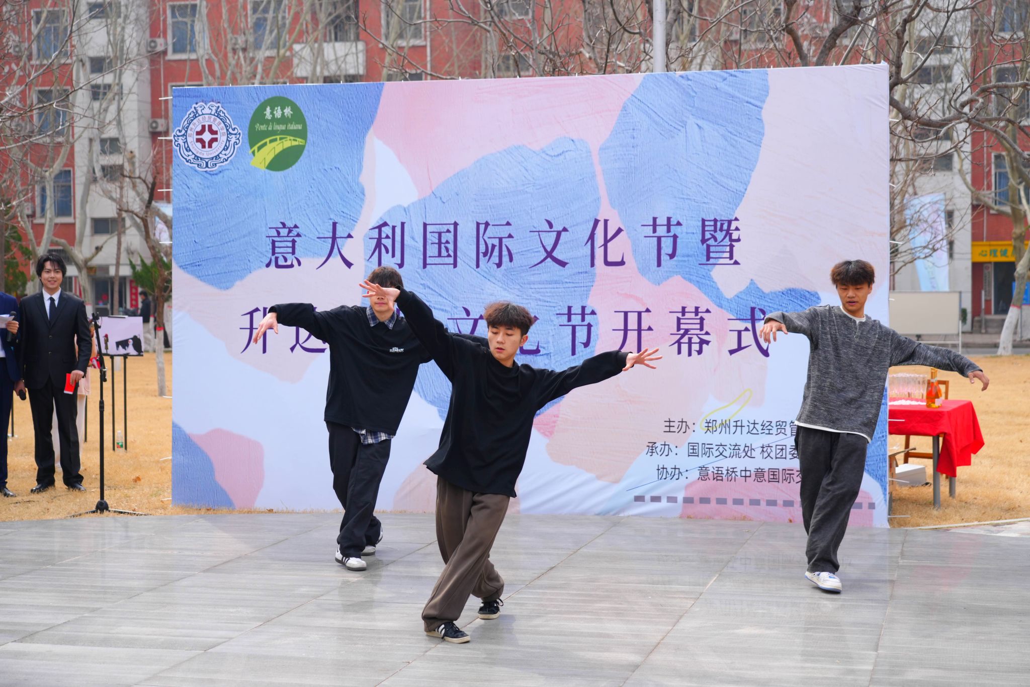 开幕式采用中意双语主持,我校2022级国本3班学生杨皓博担任中文主持,意语桥中意国际交流中心王晨栋老师担任意大利语主持。