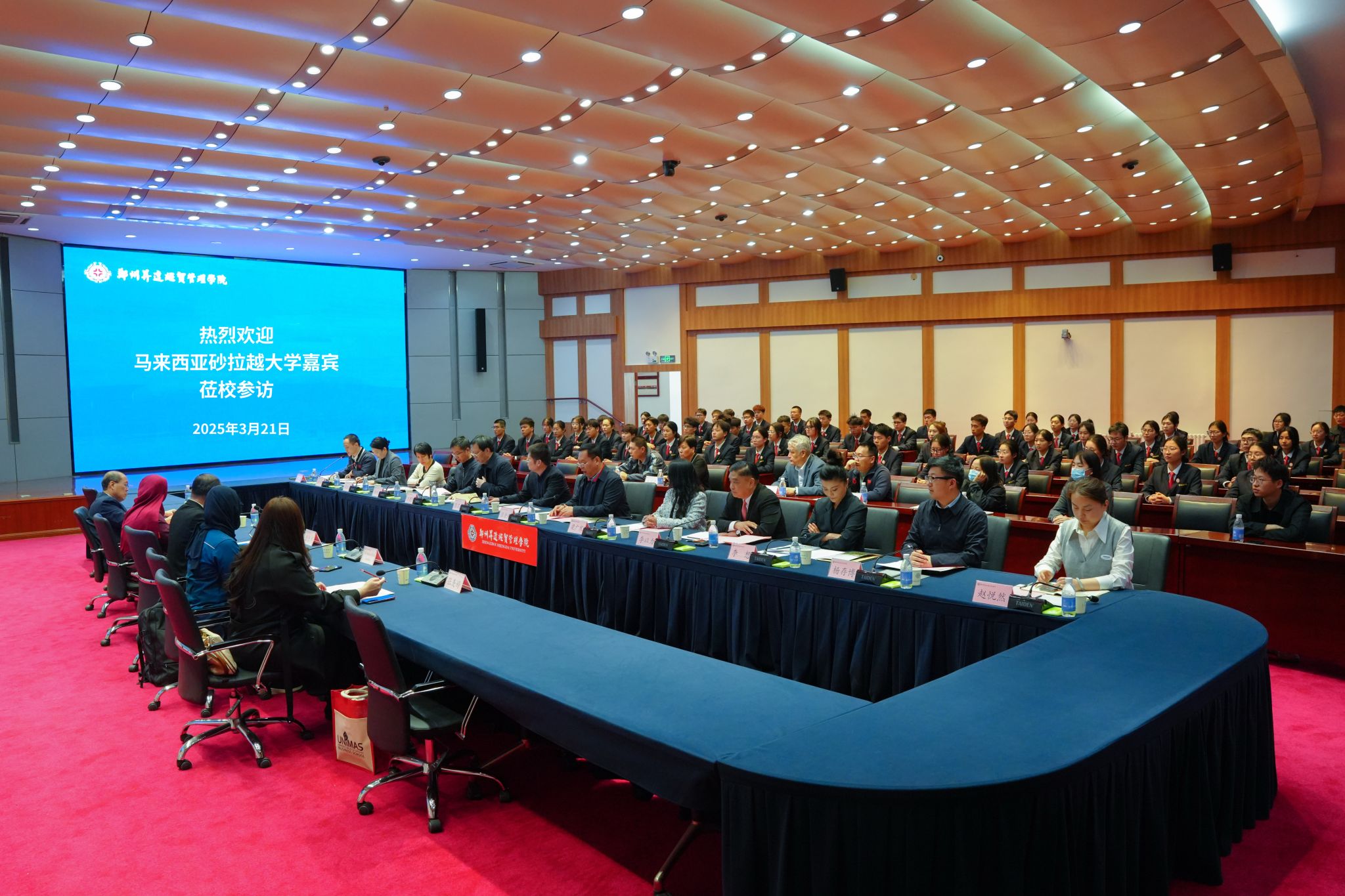 3月21日,马来西亚砂拉越大学商学院行政总裁潘振丰、学术发展与管理中心处长Dr Nur Tahirah Binti Razali、研究生院副院长Dr Haslina Binti Hashim一行莅临我校访问交流。董事长王新奇,党委副书记、副校长张金安,副校长张其武等校领导和相关部门主管接待了来宾。