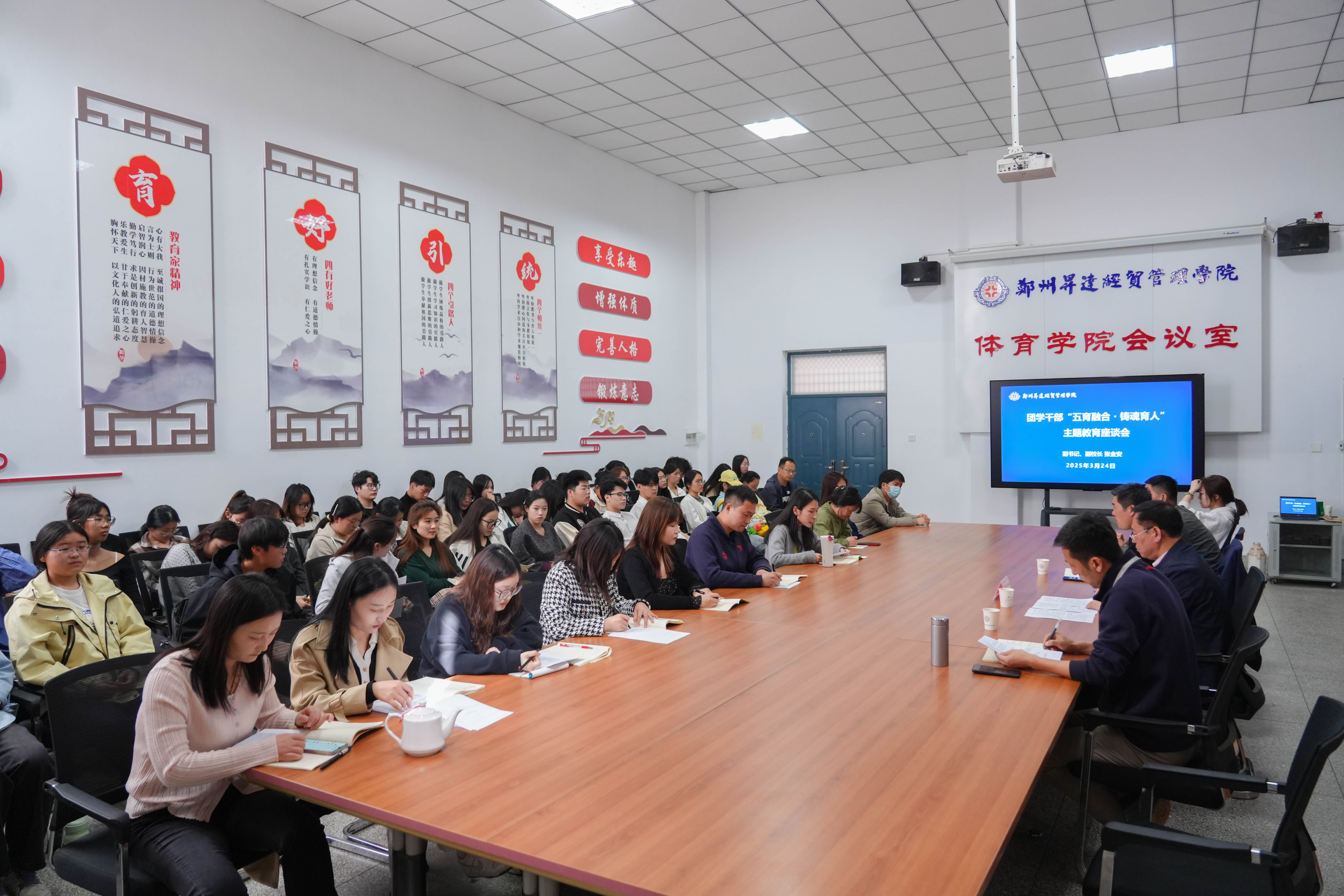 3月24日,校党委副书记、副校长张金安以《五育融合・铸魂育人》为题,在我校体育馆会议室为金融贸易学院、外国语学院、体育学院三个学院辅导员和学生代表讲授开学思政第一课。