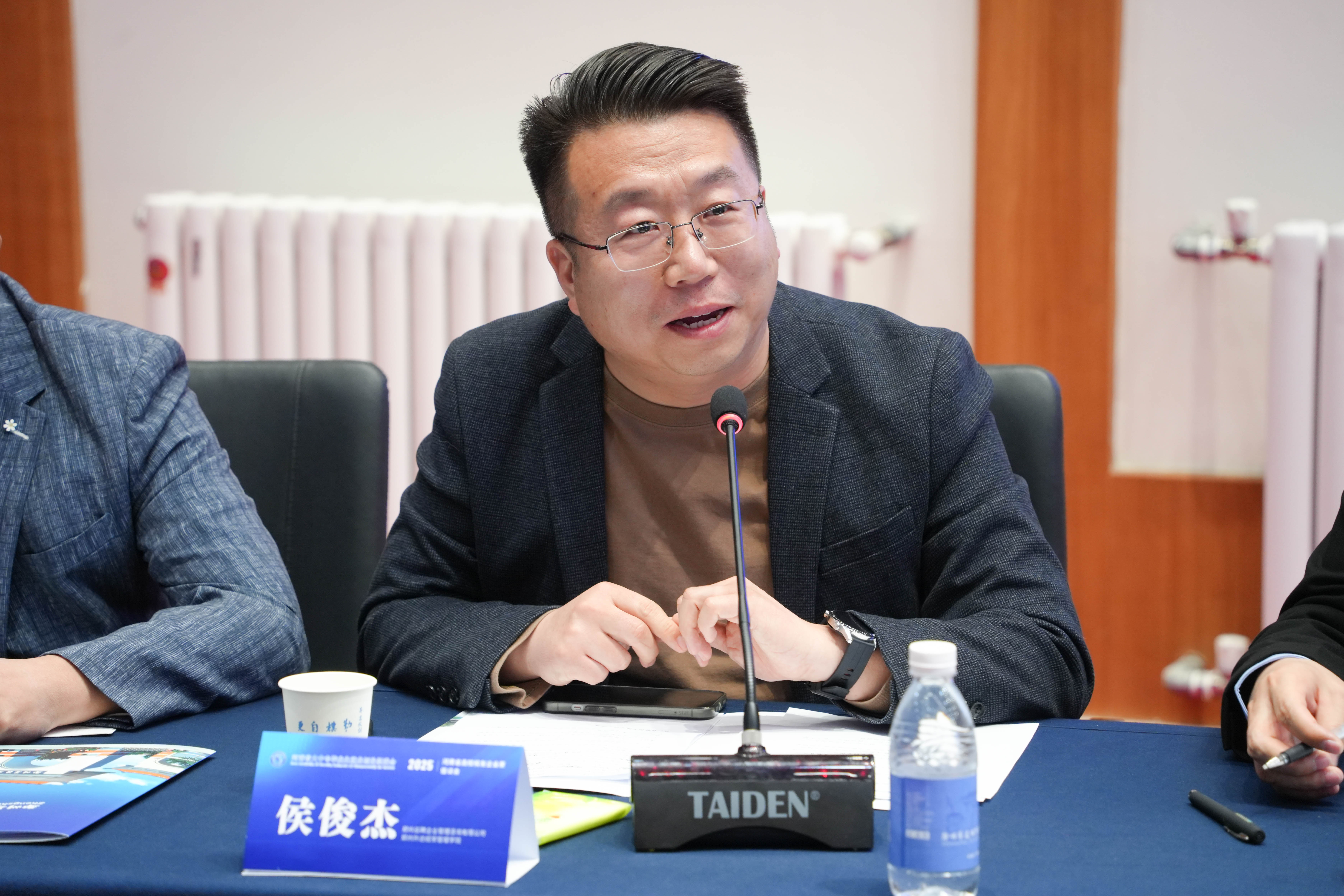 随后,岳修峰对促进会及本次会议的相关情况展开介绍。他全方位阐释了促进会的职能定位,分享了当下工作的进展情况,并展望了下一步的工作计划。岳修峰指出,促进会的重要使命之一是全力搭建起学校与企业之间沟通的稳固桥梁,积极探索能够深化校企合作的有效路径,实现相互赋能。与此同时,促进会尤为重视推动学生与企业建立起直接且紧密的联系。