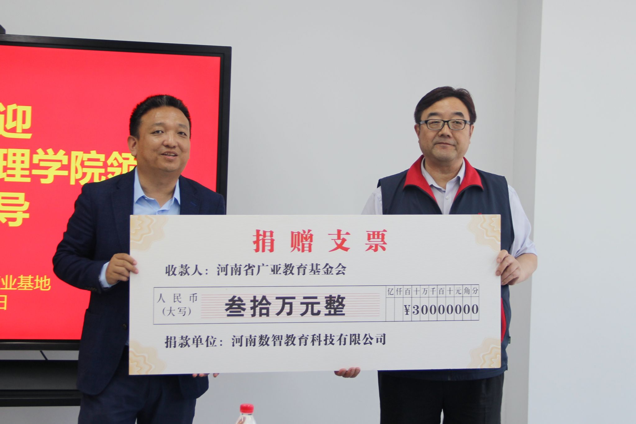 会议最后,河南数智教育科技有限公司向河南省广亚教育基金会捐赠30万元支持我校教育事业发展。