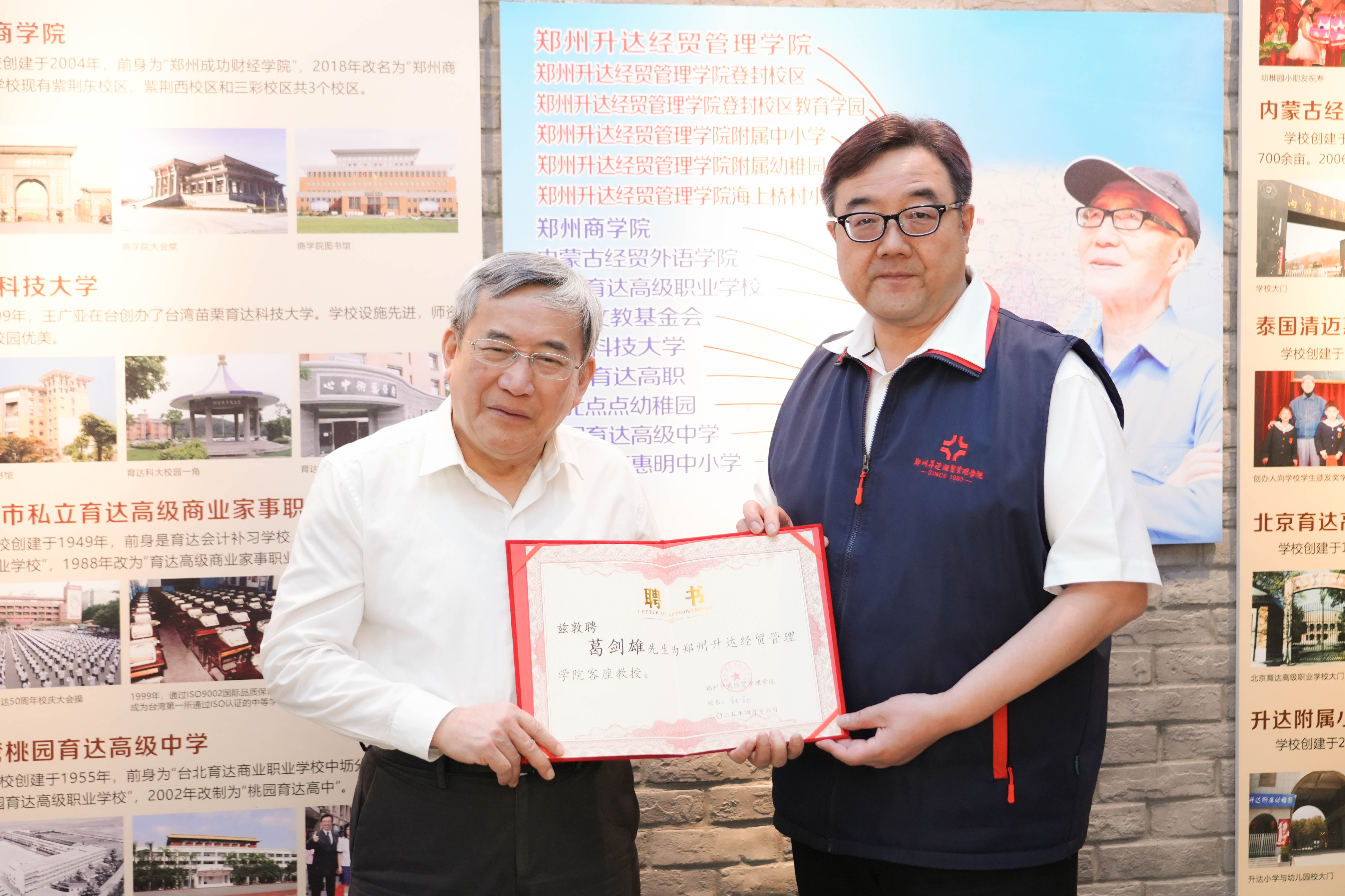 报告会前,董事长王新奇在校史馆为葛剑雄颁发客座教授聘书并赠送创办人书法作品。