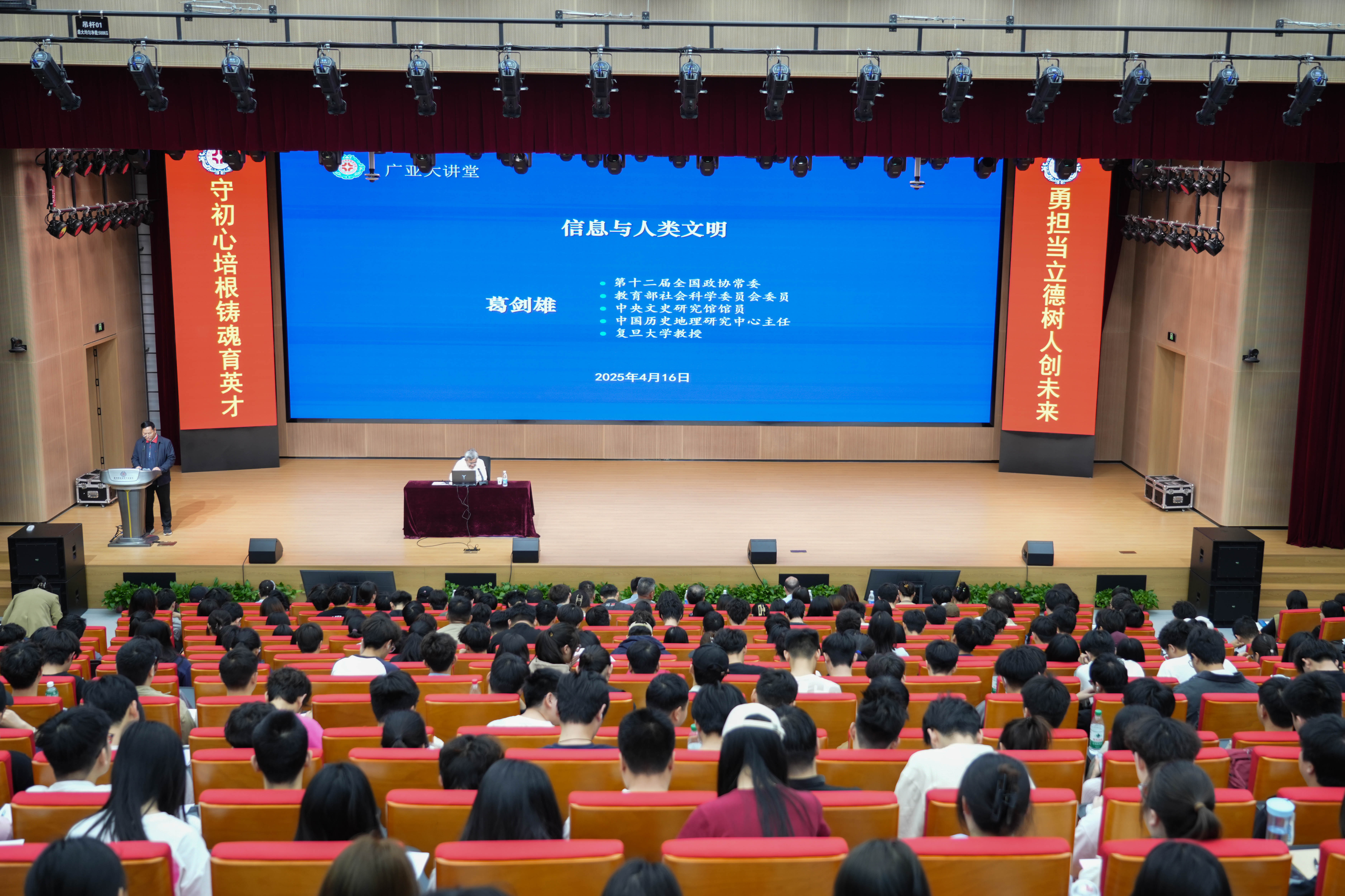 4月16日上午,复旦大学资深教授、香港中文大学(深圳)图书馆馆长、中央文史研究馆馆员葛剑雄受邀莅临我校,以“信息与人类文明”为题作专场报告。学校领导,部门主管以及信息工程学院、艺术学院师生代表400余人参会。会议由校党委副书记、副校长张金安主持。