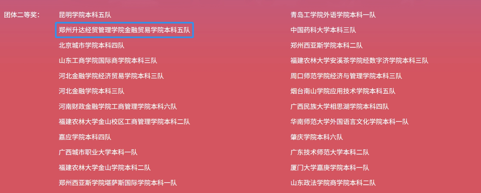 本次比赛成绩的取得离不开商学院、金融贸易学院对创新创业教育和学科竞赛的大力支持,有助于学院人才培养由学科专业单一型向多学科融合型转变,引导和培养学生创新精神和实践能力,为人才培养质量的全面提升提供借鉴。