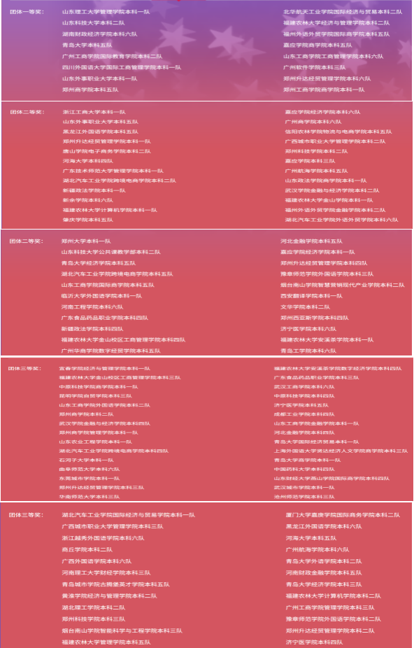 本次大赛按照参赛队伍的10%、15%和25%评选出一、二、三等奖,共有2485支参赛队,分别来自全国28个省(市)、自治区,401所院校,共计2340位指导老师和9940名选手参加。竞赛分为跨境电商数字品牌出海、跨境电商B2C运营两项内容,参赛团队获得虚拟初始资金并以团队形式开展跨境电商企业模拟运营,全面综合地检验参赛选手的跨境电商需求意识、成本意识、风险意识、利润意识、竞争意识以及运营决策、数据分析、创新思维及分析问题和解决问题的能力,我校代表队在参加竞赛的过程中学习了诸多跨境电商方面的知识、增强了电商运营能力、提升了实践技能,同时也体现了团队合作精神。