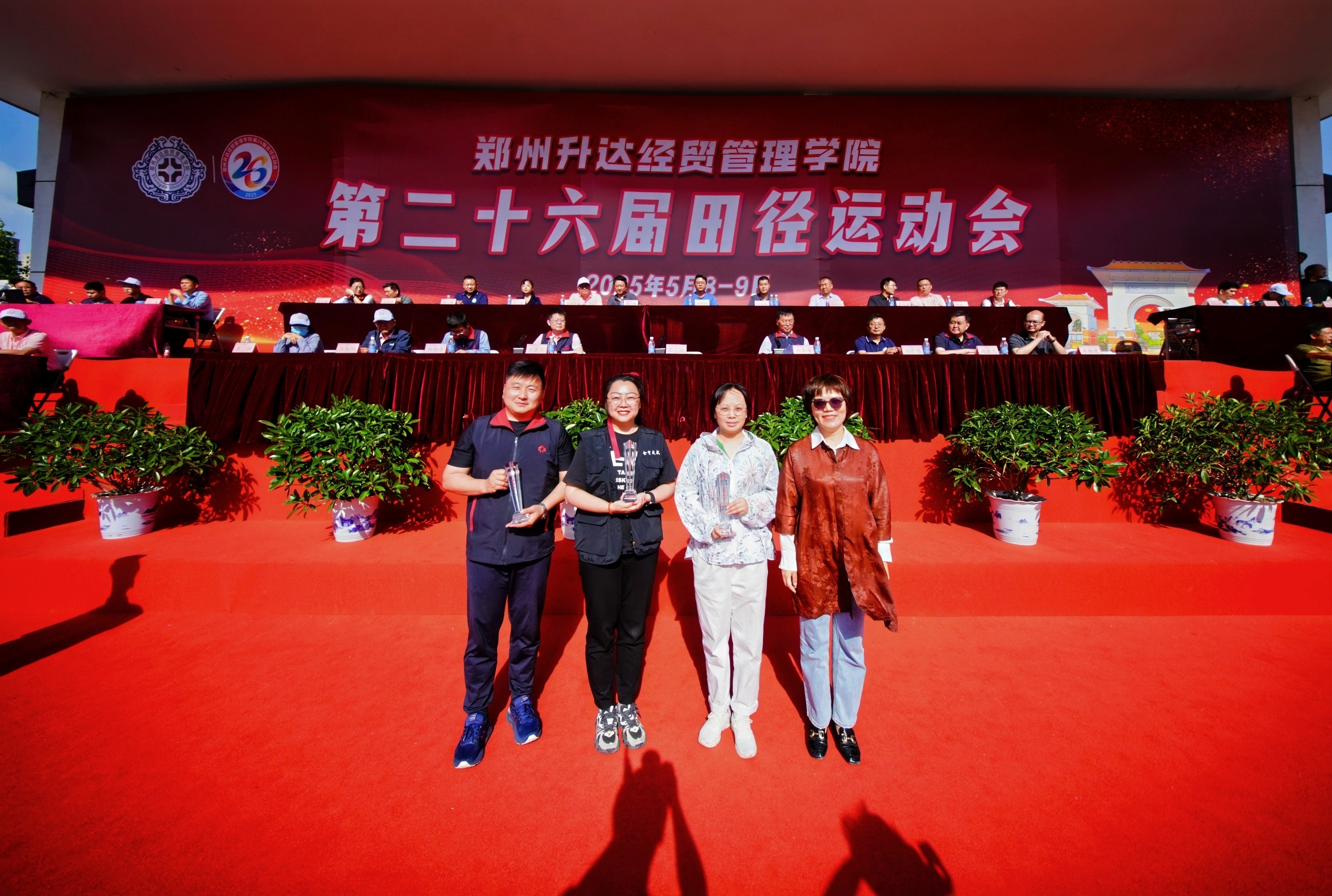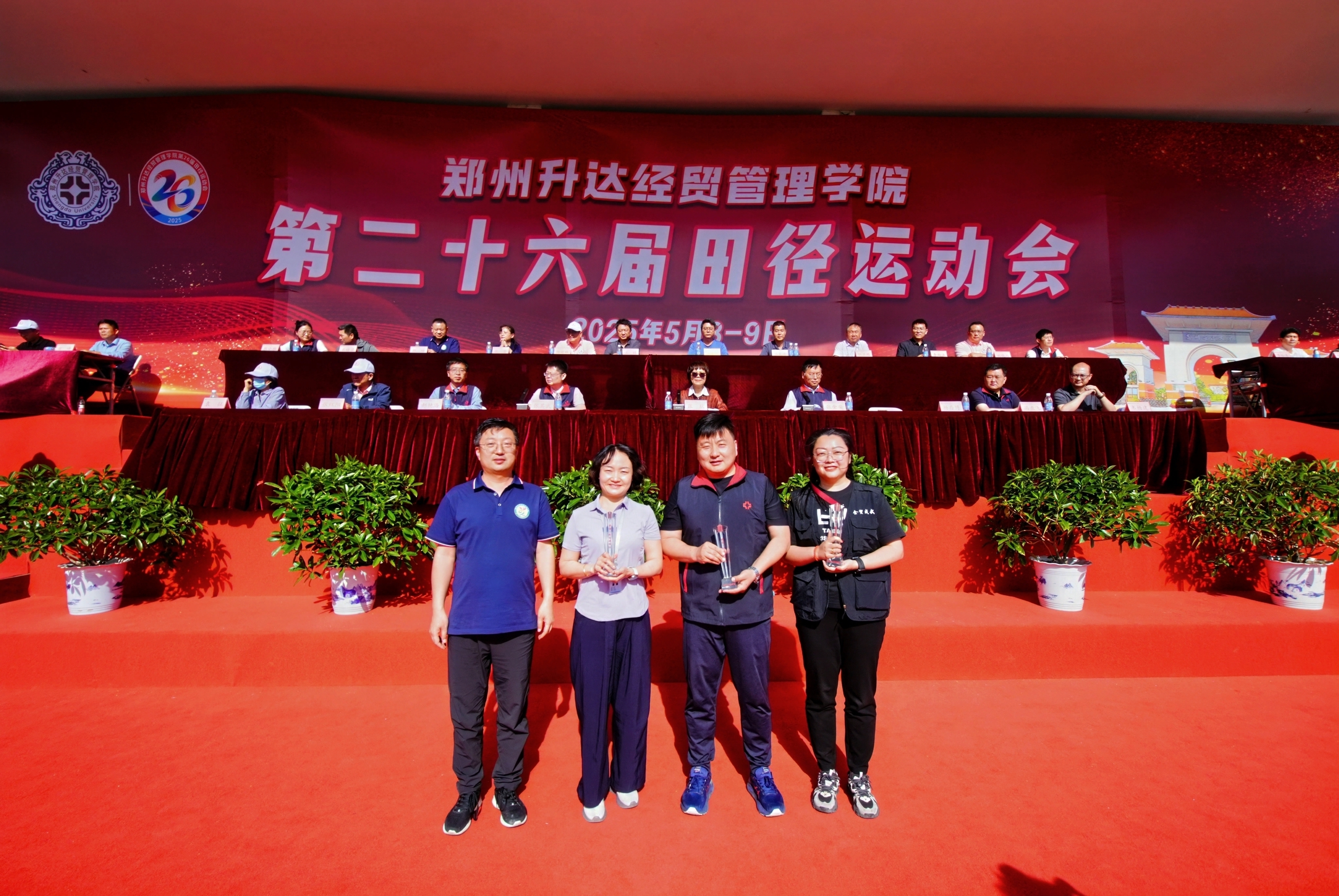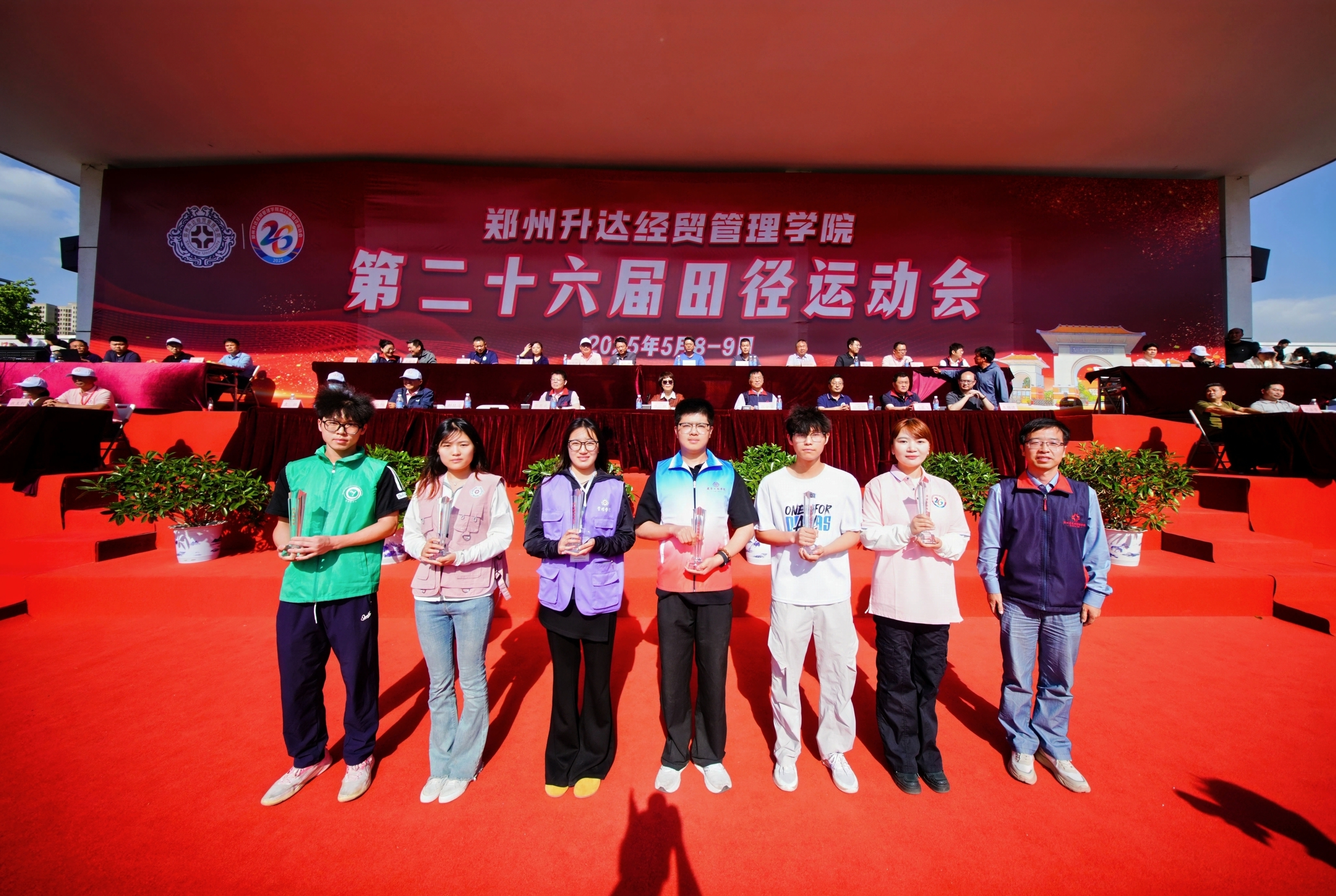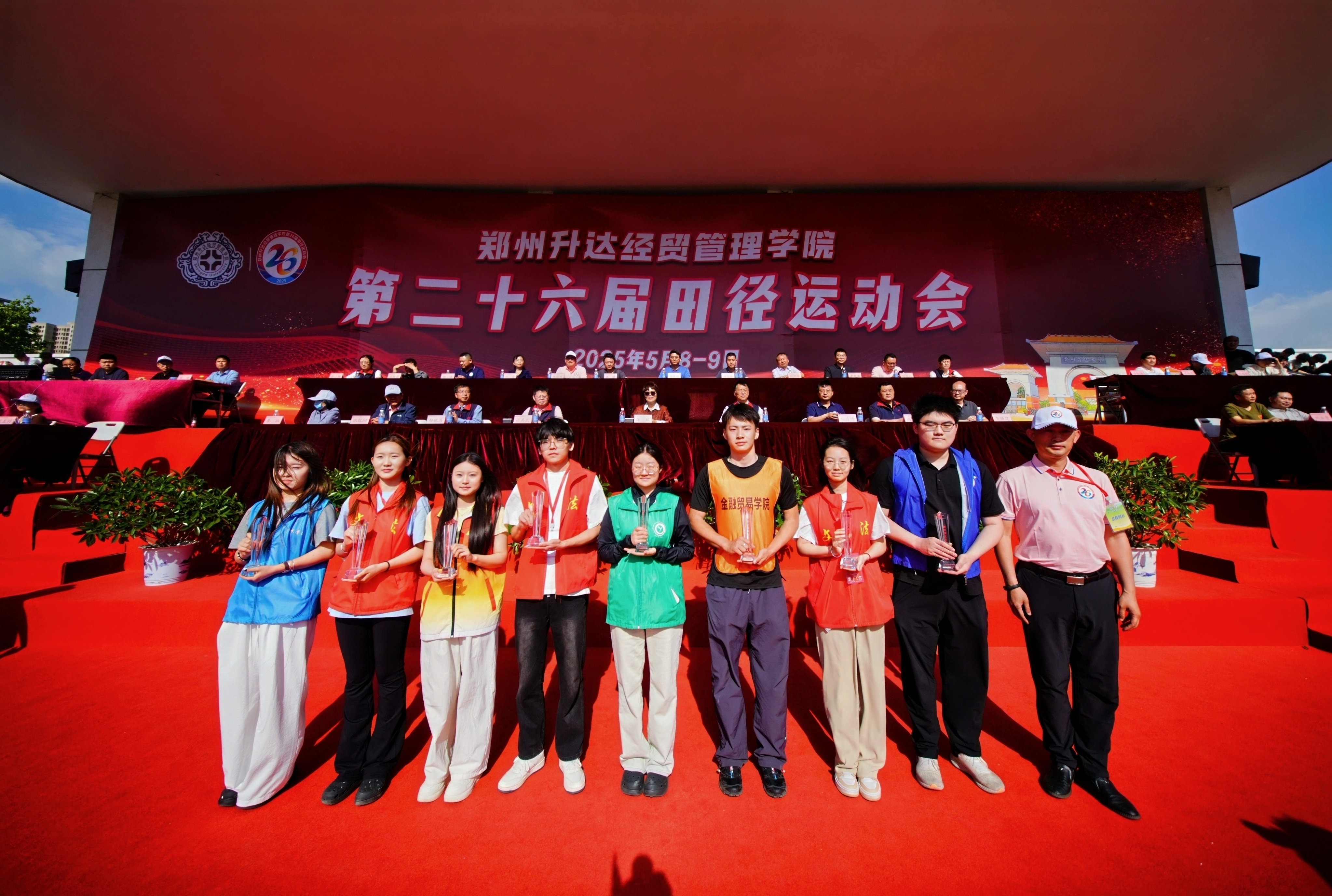 最后,张欣郑重宣布:“郑州升达经贸管理学院第26届田径运动会胜利闭幕!”