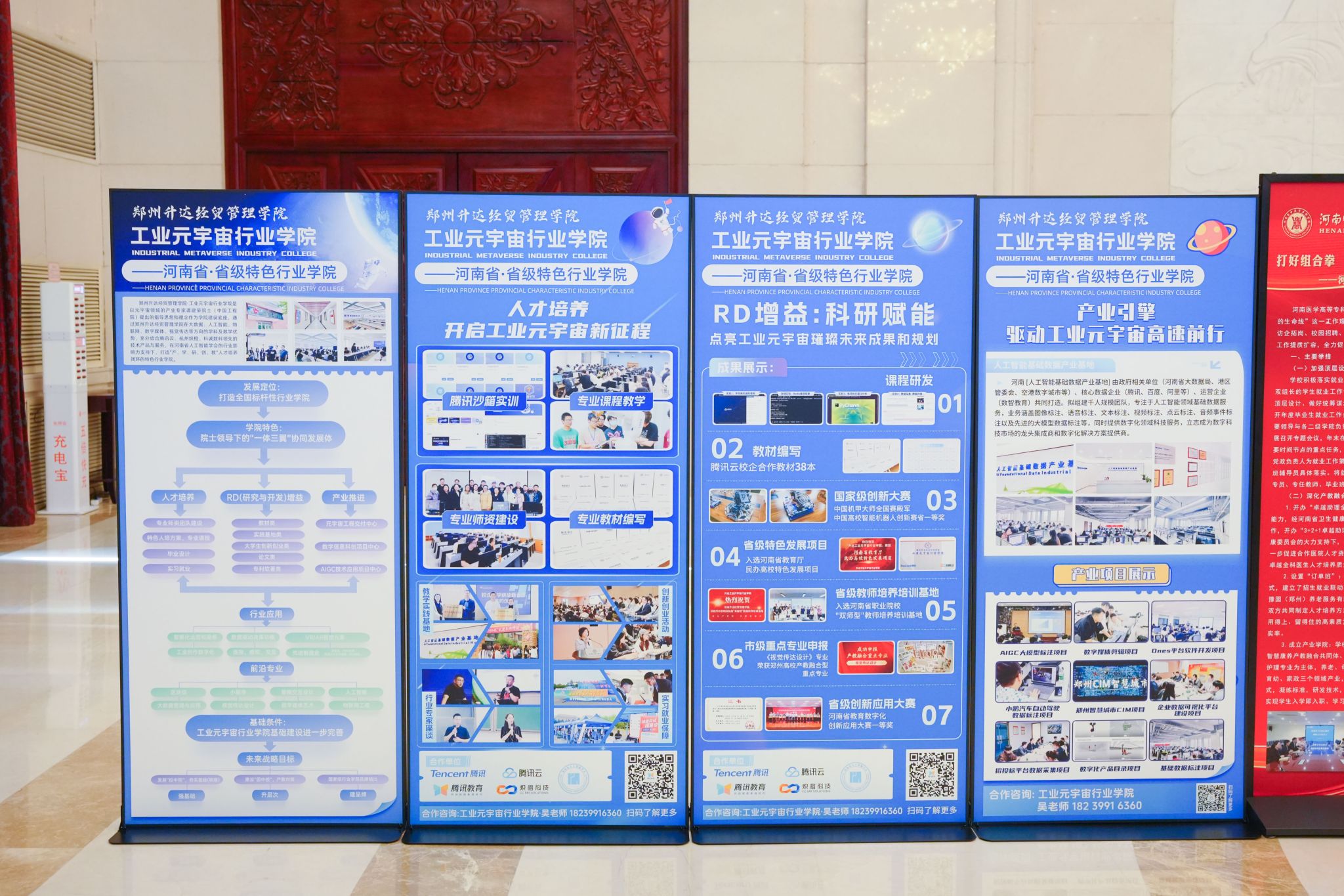 活动现场,我校与腾讯、杭州炽橙、河南数智教育等科技公司签署协议,合作共建的省级特色行业学院——工业元宇宙行业学院成为众多产教融合案例中一大亮点,充分彰显了学校在产教融合领域的突出成效。