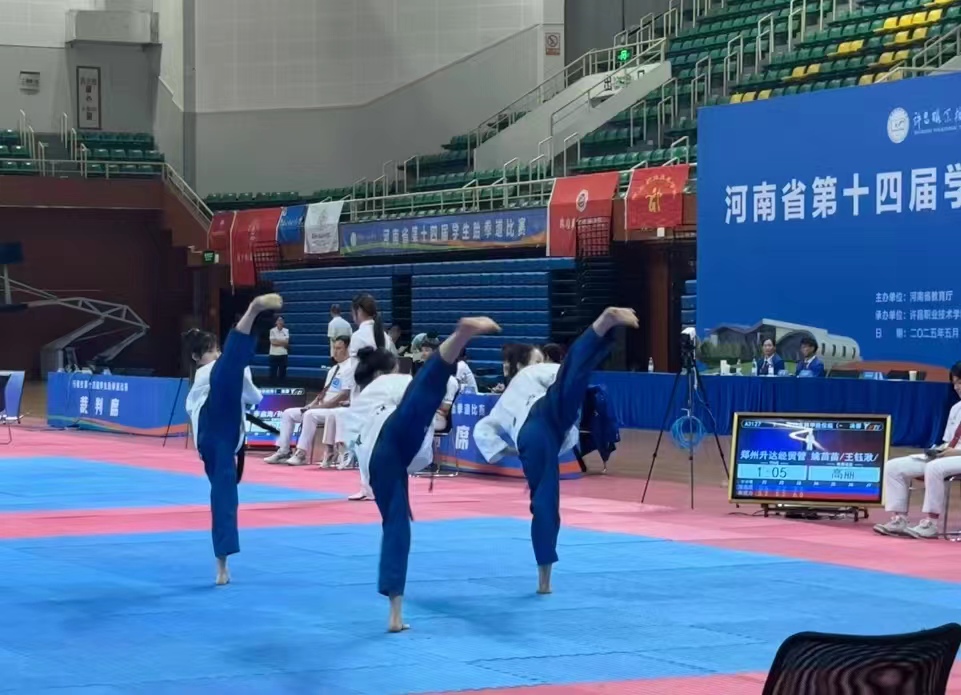 2025年河南省第十四届学生跆拳道比赛(大学生组)于5月11日-15日在许昌职业技术学院体育馆开赛,本次比赛由河南省教育厅、河南省体育局主办,共有来自河南大学、郑州大学、河南师范大学等82支代表队、近千名教练员、运动员参赛。