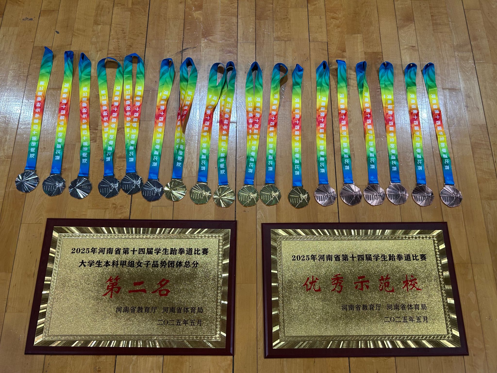 我校由党委副书记、副校长张金安任领队,陈阳光、祝磊任教练员,共17名运动员参加了竞技和品势项目的比赛。经过5天的激烈角逐,我校跆拳道队共获得6枚金牌、6枚银牌、7枚铜牌和3个第四名、2个第五名、1个第六名、1个第八名的优异成绩,获得女子品势甲组团体总分第二名,并被河南省教育厅、河南省体育局授予“优秀示范校”称号。此次佳绩的取得,是学院“五育并举”教育理念的生动实践。
