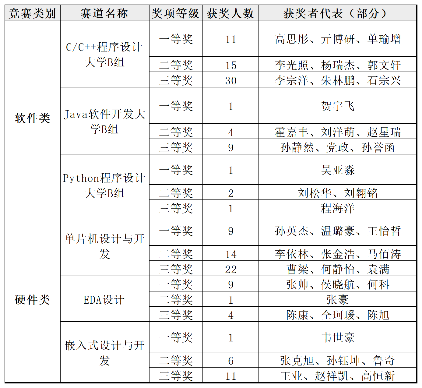 一方面,在软件类竞赛中,C/C++程序设计赛道表现尤为亮眼,高思彤、亓博研等11名学子斩获B组一等奖;Java软件开发赛道贺宇飞同学摘得桂冠;Python程序设计赛道吴亚淼同学荣获一等奖,充分展现了我校在多元化编程语言教学中的扎实功底。另一方面,在硬件类竞赛中,单片机设计与开发赛道成绩斐然,孙英杰、温璐豪等9名同学问鼎省级一等奖;EDA设计赛道张帅、侯晓航等9名选手拔得头筹;嵌入式开发赛道韦世豪同学更以优异表现摘得一等奖,彰显了学校在新工科实践教育中的显著成效。