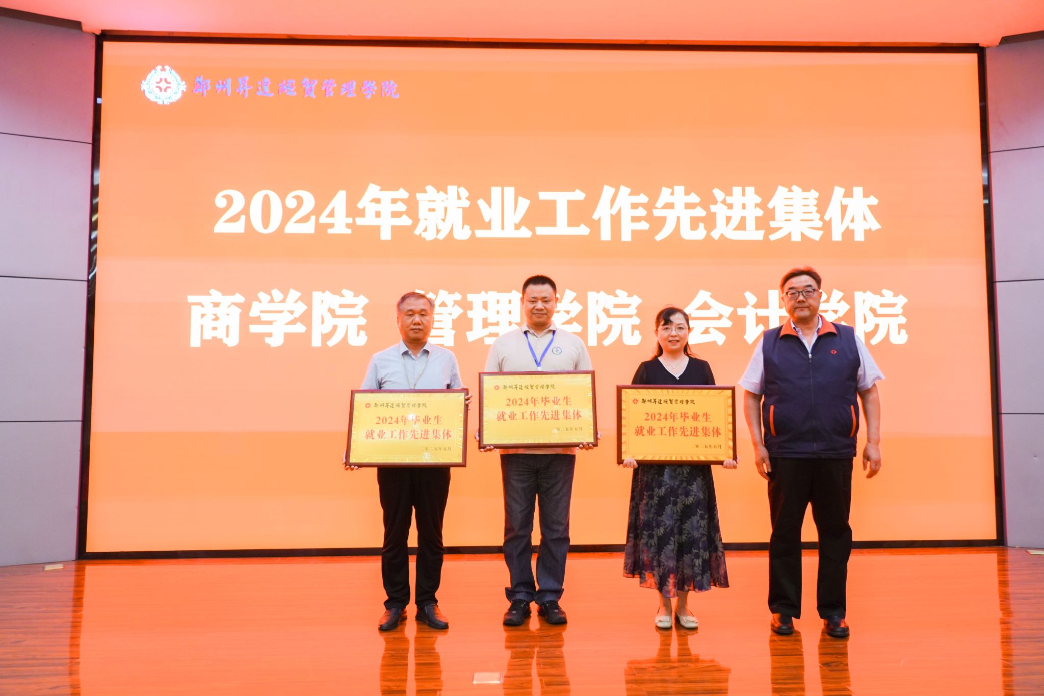 随后,王新奇为2024年就业工作先进集体颁发奖牌,张欣为2024年就业工作先进个人颁发荣誉证书。