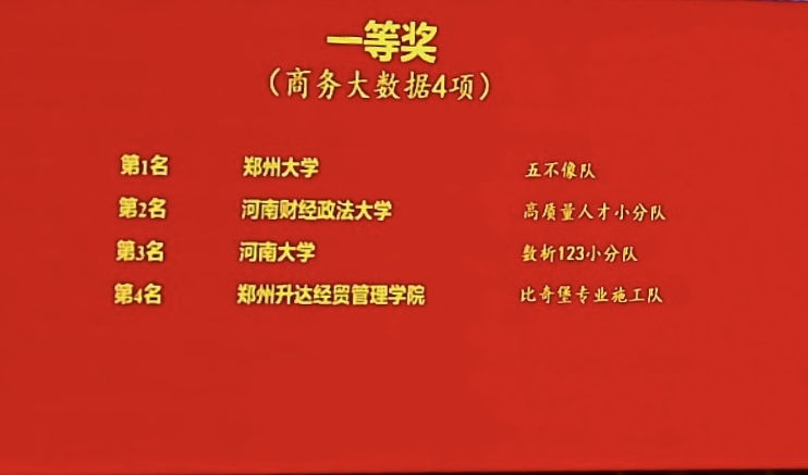 近日,第十五届全国大学生电子商务“创新、创意及创业”挑战赛(简称“三创赛”)河南赛区省级选拔赛在河南工业大学成功举办,我校商学院2022级跨境电商专业“比奇堡专业施工队”团队取得全省第四的优异成绩,荣获省级“一等奖”。