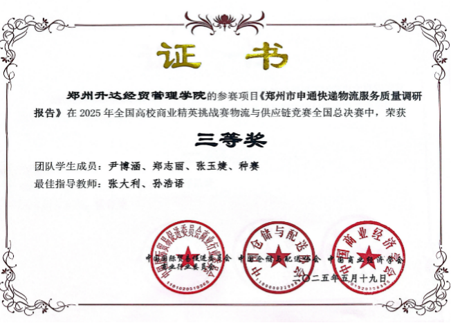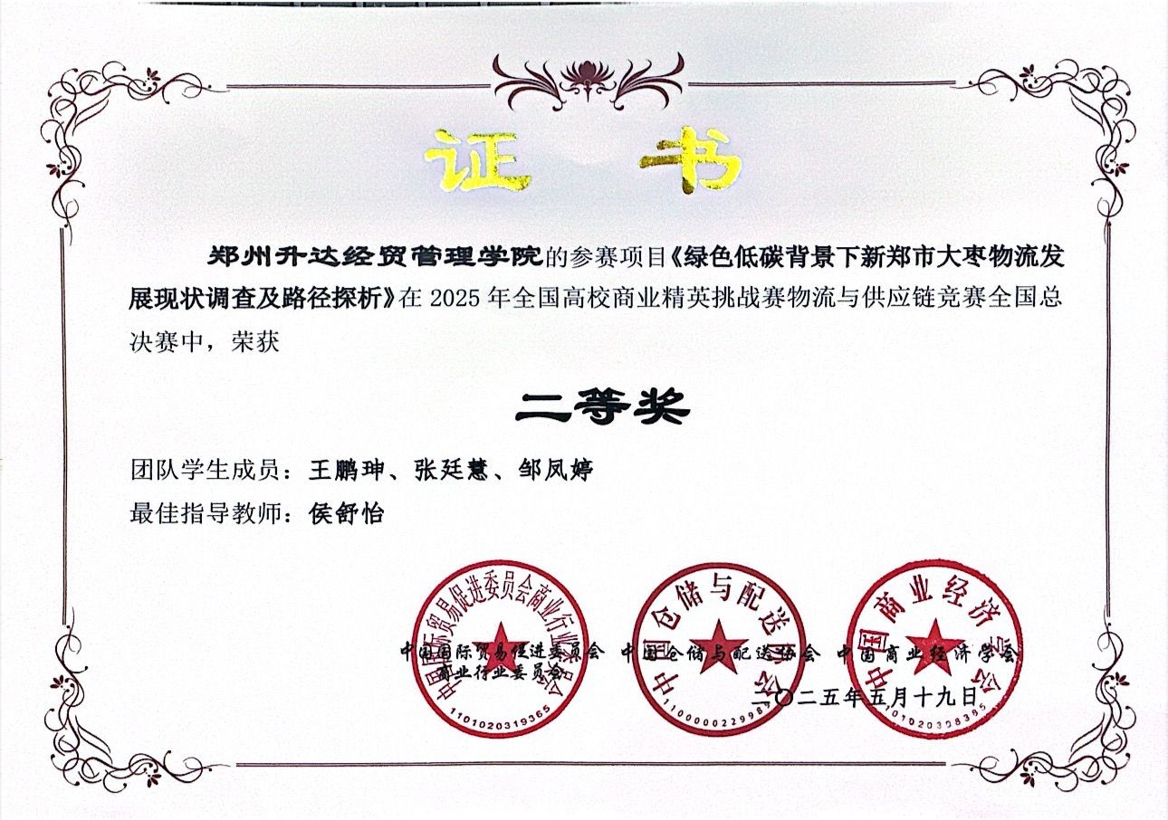 近日,由中国国际贸易促进委员会商业行业委员会、中国仓储与配送协会及中国商业经济学会联合主办的2025年全国高校商业精英挑战赛物流与供应链竞赛全国总决赛圆满落幕。我校商学院参赛团队在此次国家级赛事中表现卓越,2支团队入围全国总决赛,最终获得二等奖1项、三等奖1项。