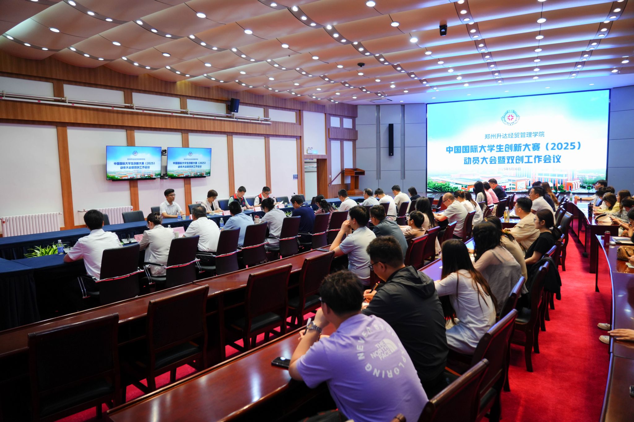 会议伊始,王铮介绍了与会领导及嘉宾,并为大会致辞。随后,创新创业教育学院实践管理科科长彭凯详细汇报了我校往届创新大赛的获奖情况,以及2025年大赛工作的进度安排和准备情况。