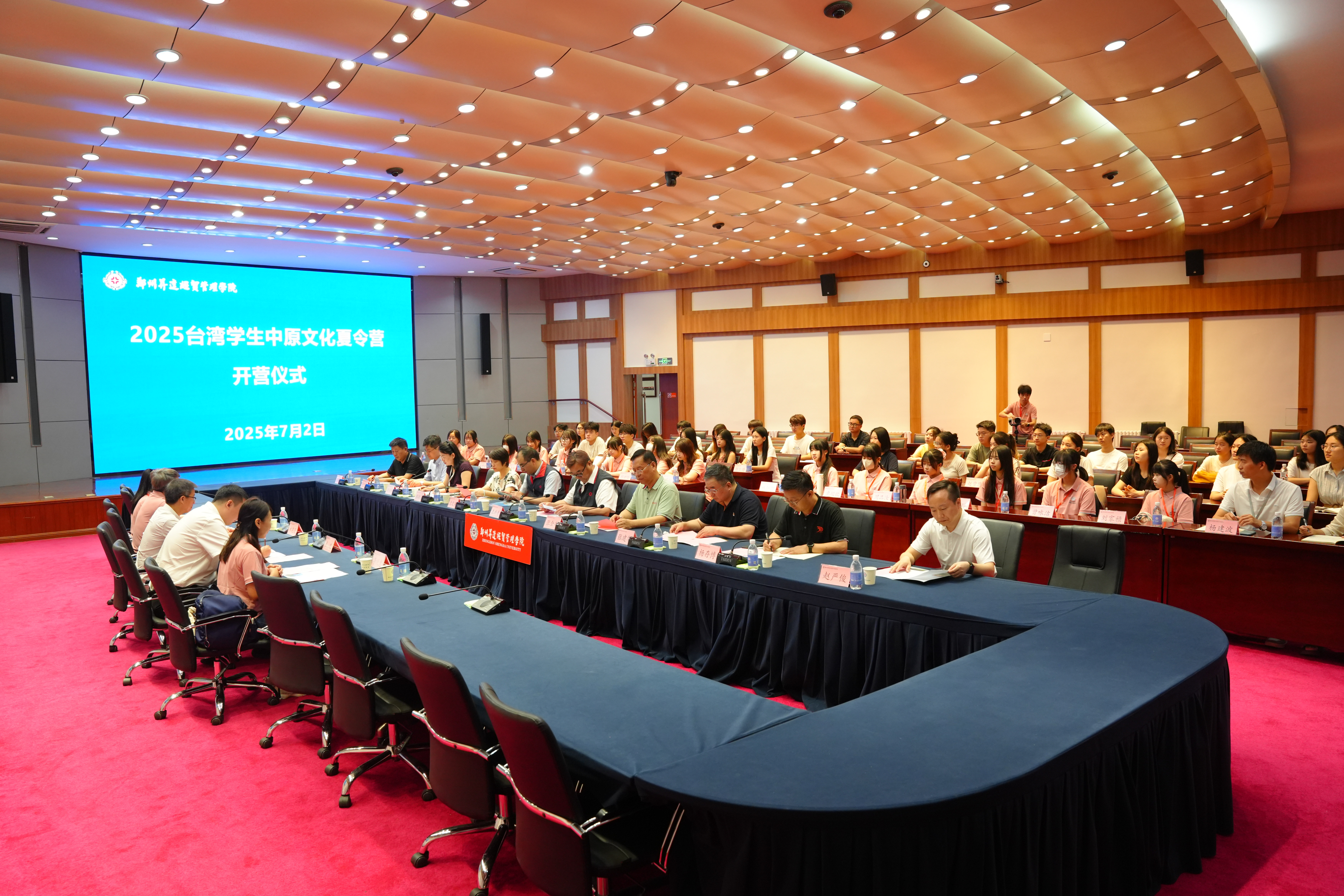 7月2日上午,我校组织的2025年台湾学生中原文化夏令营开营仪式在行政楼国际会议厅举行。河南省台联两岸青年交流委员会副主任委员崔文,郑州市台商协会副会长林英源,北京中世裕公司总经理吴泽永,中国农业大学艺术中心博士张建华,台湾教师代表刘豫忠,校领导董事长王新奇,副校长张金安,登封校区党工委书记、发展规划处处长沈定军出席仪式,董事会办公室、实训与设备管理处、文法学院、升达附属幼儿园相关人员及全体夏令营师生参加仪式。仪式由我校港澳台事务办公室主任顿雁峰主持。