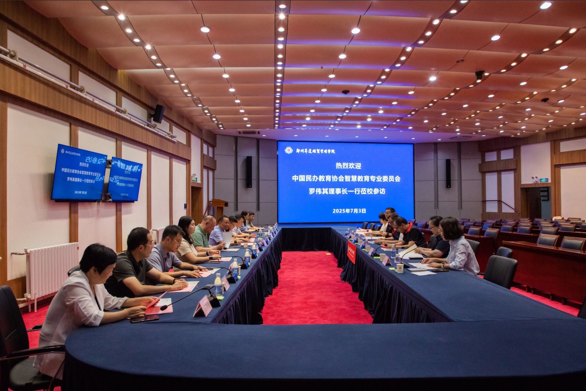 7月3日下午,中国民办教育协会智慧教育专业委员会理事长罗伟其一行莅校参访交流。双方在国际会议厅召开座谈会。
