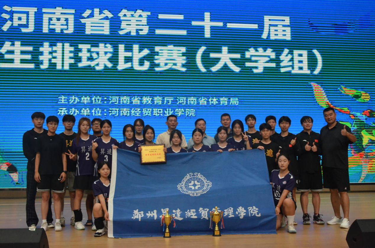 7月8日,由河南省教育厅、河南省体育局主办的河南省第二十一届学生排球比赛(大学生组)在河南经贸职业学院落下帷幕。我校党委副书记、副校长张金安到现场观赛并出席闭幕式。我校女子排球队以7胜1负的战绩荣获亚军,创造了历史最佳成绩。男子排球队获得“体育道德风尚奖”荣誉。