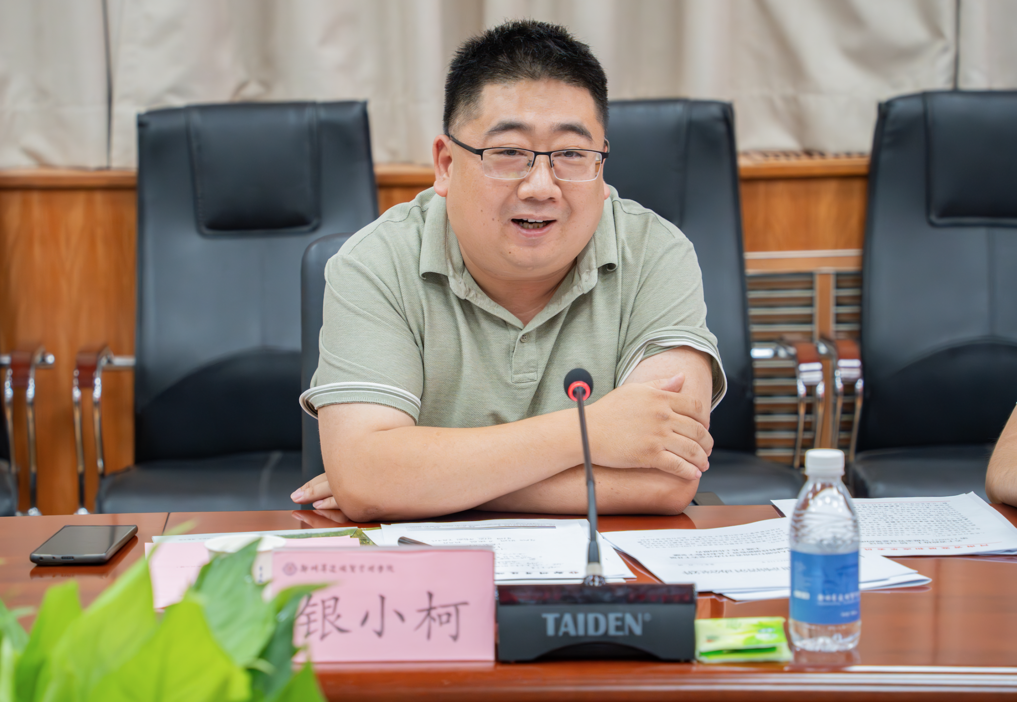 王新奇代表学校董事会、党政领导班子及全体师生对银小柯副处长一行的到来表示热烈欢迎,并结合提案的背景,详细介绍了学校概况、办学成绩、发展成果及在金融科技、数字经济等相关领域的学科特色、科研实力、社会服务、产学研融合等情况。