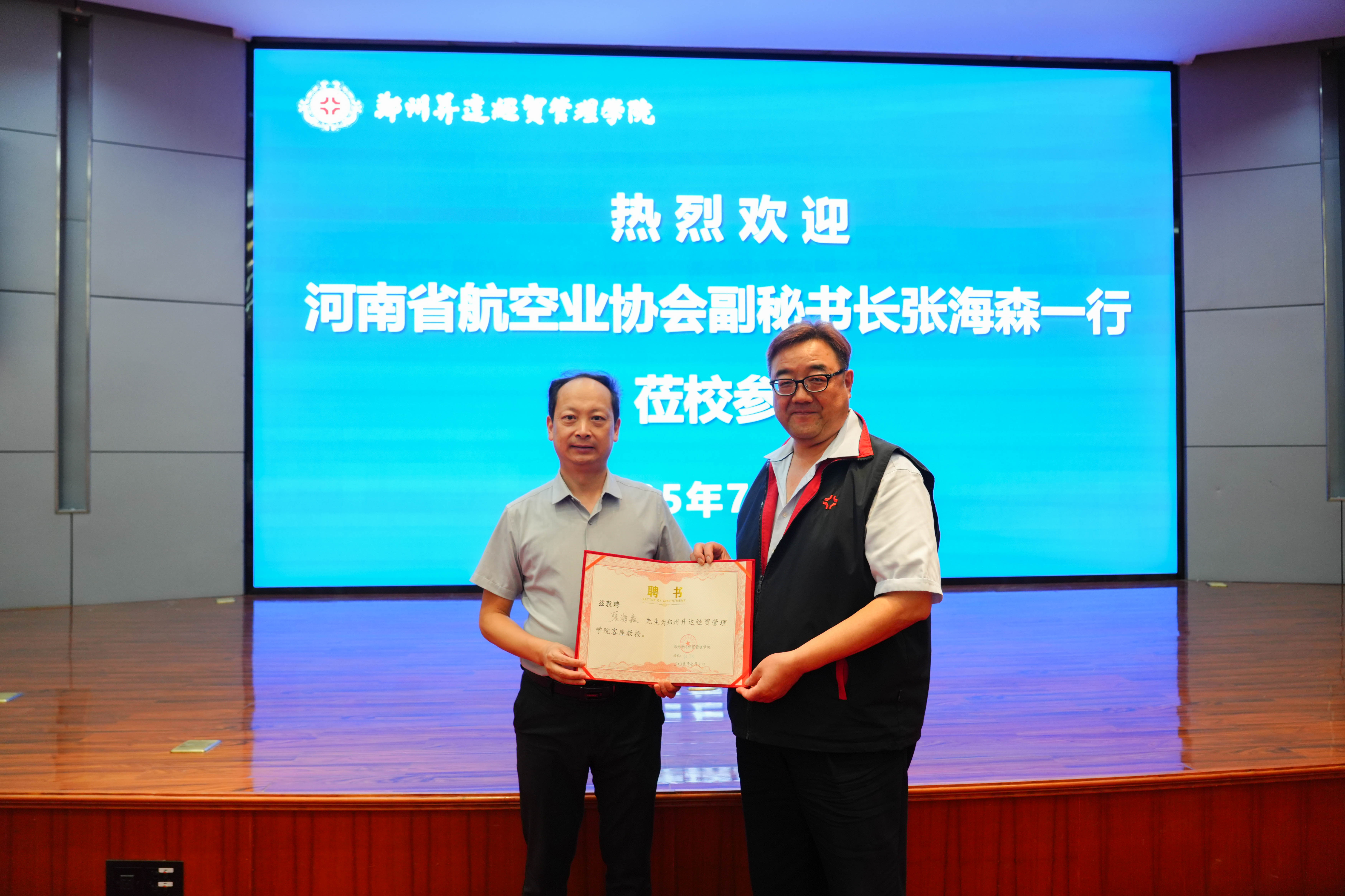 7月10日上午,河南省航空业协会副秘书长张海森一行莅校参访交流。双方在国际会议厅召开座谈会。