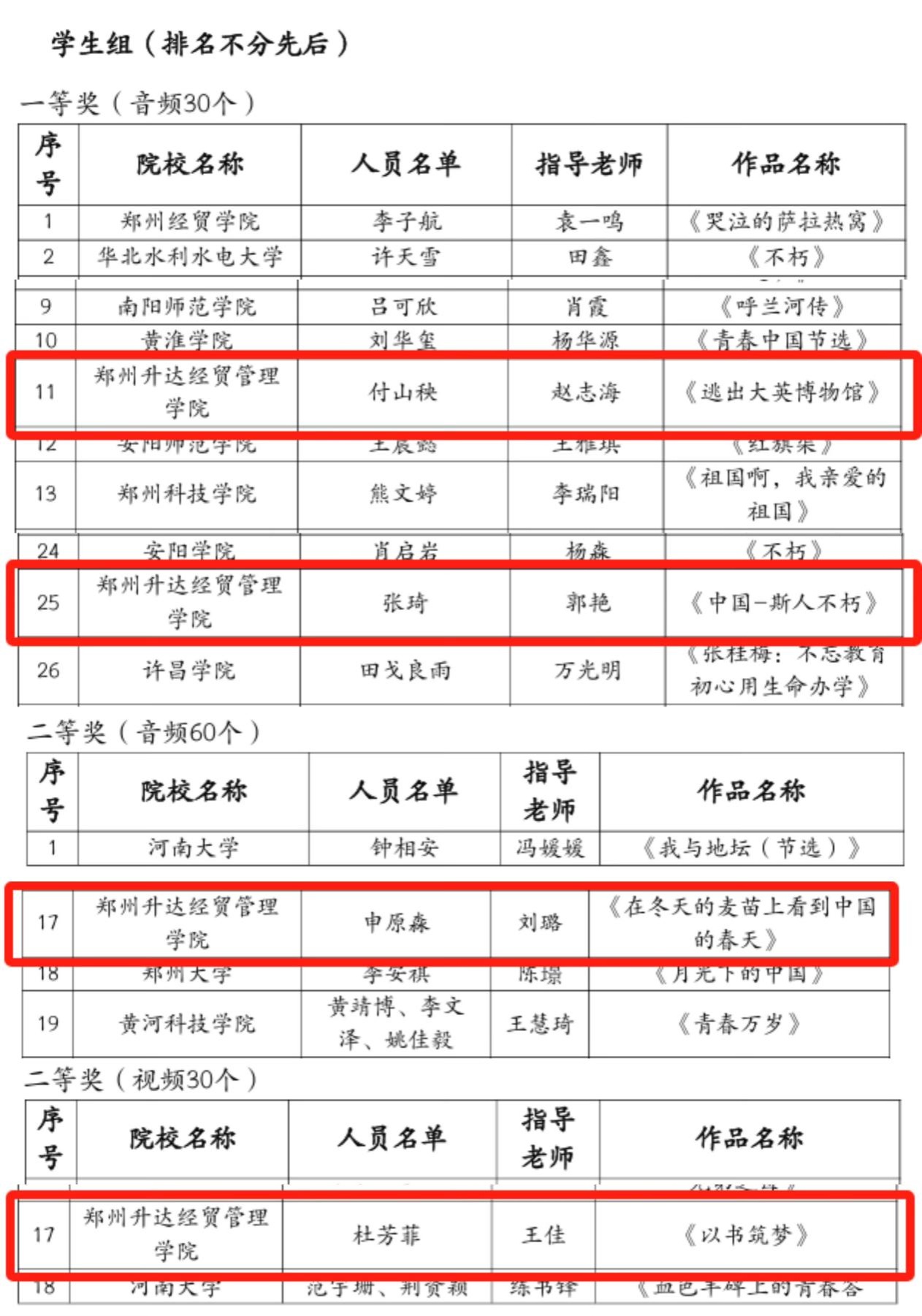 近日,由河南省教育厅高等教育处、河南省高校图书情报工作委员会、“学习强国”河南学习平台主办的第六届河南省高校“赓续华夏文脉·唱响时代新篇”主题诵读大赛获奖名单公布,我校在本次大赛中荣获多项奖项。