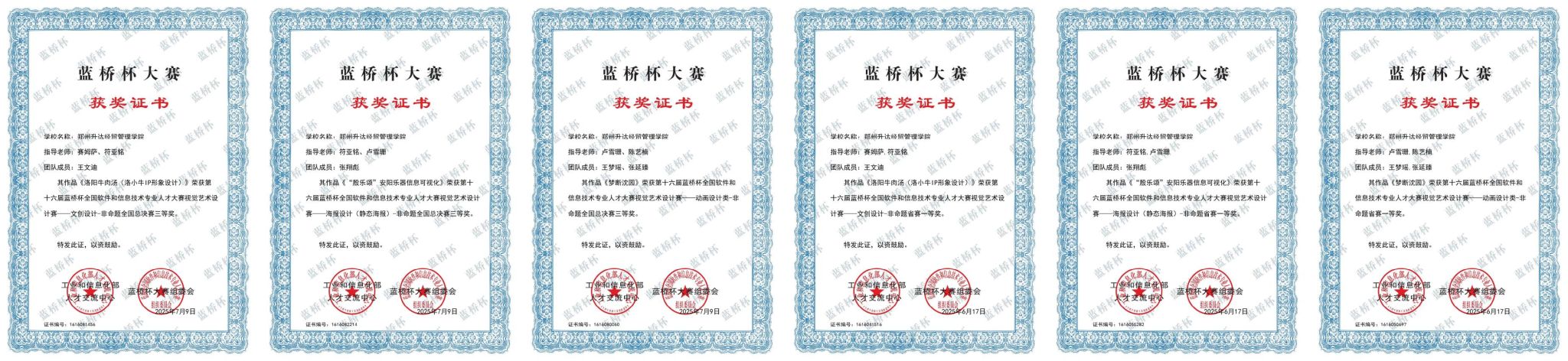 近日,第十六届“蓝桥杯大赛——视觉艺术设计赛”获奖名单正式揭晓,我校艺术学院设计学各专业在此次赛事中表现卓越,选送作品再创辉煌,交出了一份令人瞩目的成绩单。在学院领导的大力支持组织积极推动下,在符亚铭、赛姆萨、卢雪珊、陈艺楠、李昕懿、孙嘉意等多位老师的悉心指导下,我校艺术学院设计学各专业选送的作品在众多参赛作品中脱颖而出。此次共荣获国家三等奖3项,河南省一等奖3项、二等奖8项、三等奖19项以及优秀奖8项,获奖数量与质量均实现了新的突破。