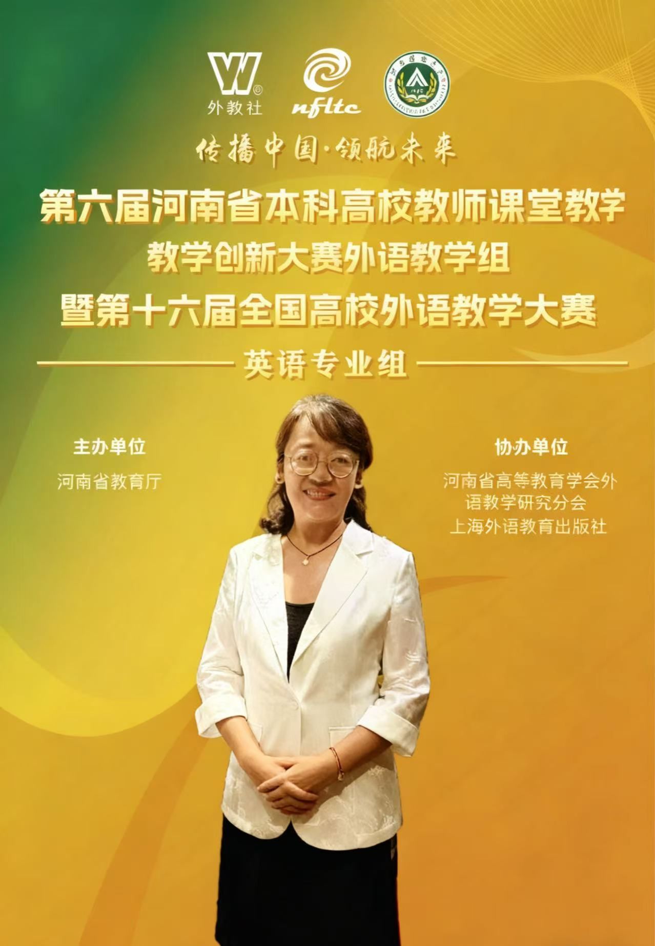 2025年9月19日—21日,由河南省教育厅主办、河南农业大学承办,河南省高等教育学会外语教学研究分会与上海外语教育出版社联合协办的“第六届河南省本科高校教师课堂教学创新大赛(外语教学组)”暨“第十六届全国高校外语教学大赛河南省赛(英语专业组)”在郑州圆满落下帷幕。来自全省37所本科高校的外语学科英语专业教师同台竞技,展现新时代高校外语教学的创新活力与育人智慧,最终我校外国语学院张丽娟老师凭借扎实的教学功底、新颖的教学设计与出色的课堂呈现,成功荣获本次大赛特等奖。