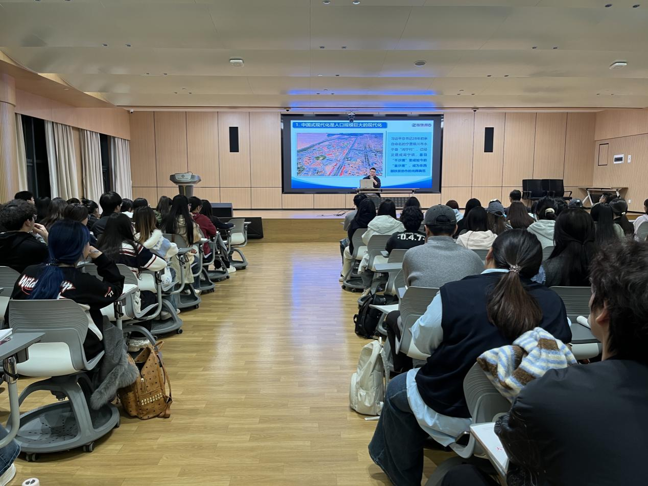 开班仪式后,艺术学院党委书记李赵法同志以《读懂中国式现代化》为题讲授了专题“党课第一讲”。他围绕“展现新图景、创造新形态,拥抱新机遇、无畏新挑战,锚定新目标、铸就新伟业”的时代要求,从中国式现代化的科学内涵、鲜明特征与实践路径三个核心层面深入切入,在授课中巧妙结合波澜壮阔的时代背景与鲜活生动的现实案例,深入浅出地解读了其重大意义,让学员们对国家发展道路有了更深刻的认知,更明晰了在新时代浪潮中践行使命、助力铸就新伟业的方向与路径。