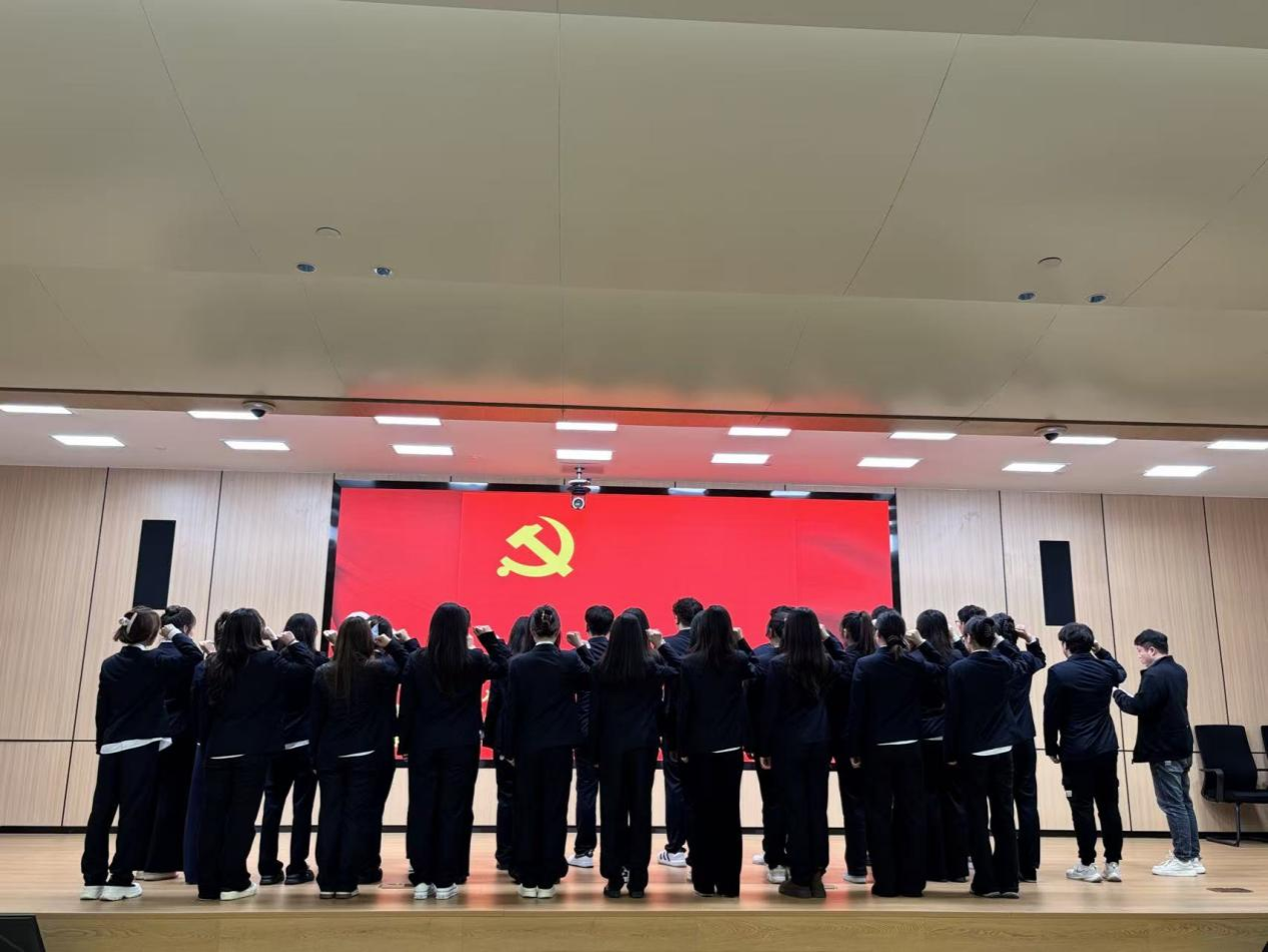 议程进入第二阶段,由艺术学院和数学与信息科学学院党委副书记尹红艳同志和李明明同志为第二十一期预备党员依次佩戴党员徽章。随后,在领誓人刘世举同志带领下,预备党员面向鲜红党旗庄严宣誓,宣誓声响彻全场,表达了为共产主义奋斗终身的坚定信念。