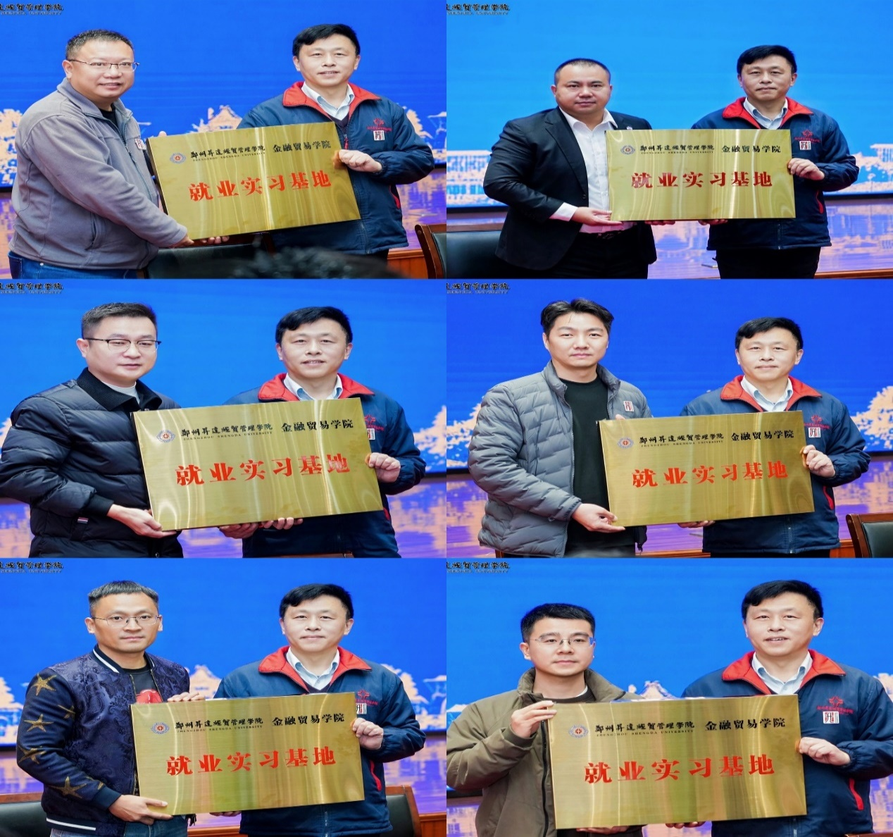现场举行了隆重的校企合作签约仪式,并向校友企业颁发就业实习基地牌匾。何伟代表学院依次与合作企业代表签署合作意向书。