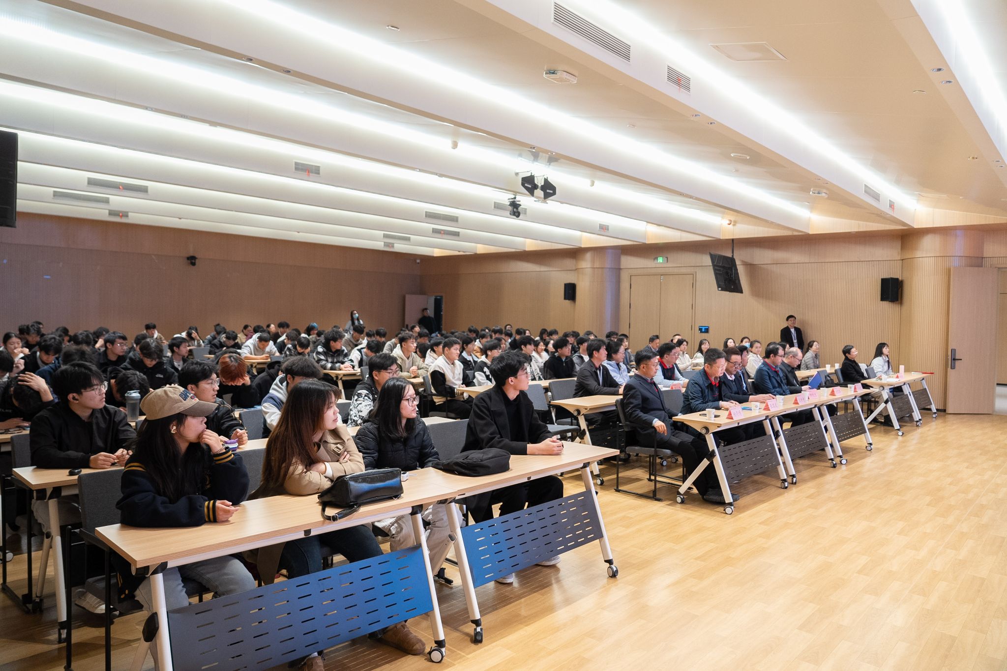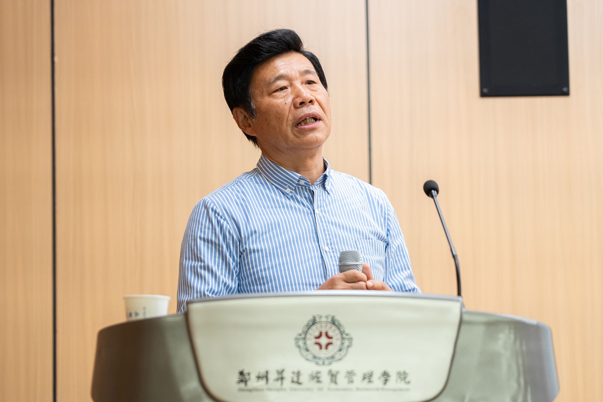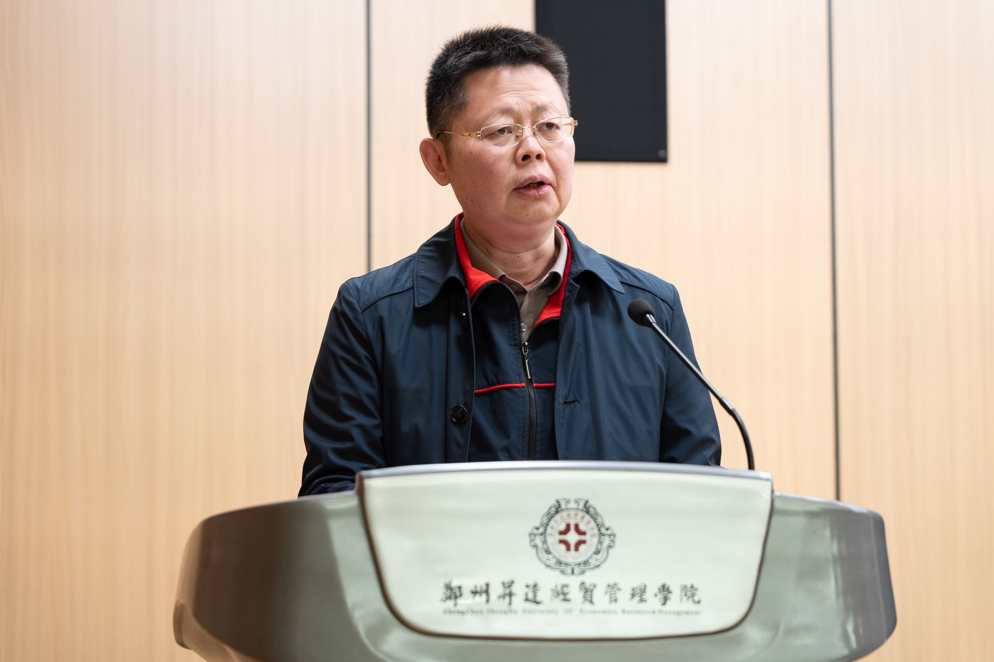 随后,田教授为大家作了一场题为《王阳明的心学及其当代启示》的学术报告。田教授曾荣获“全国非211院校十大受欢迎教授”、“河南省十大受欢迎教授”等称号。报告中,田教授梳理了王阳明从少年求索到“龙场悟道”的心路历程,深入阐释了“心即理”“知行一”与“致良知”三大心学精髓。他指出,“心即理”是心学体系的奠基;“知行一”主张真知必能行,强调知与行的本质统一;而“致良知”则是心学的终极指向,指出良知为人所固有,是成圣成贤的内在根基。通过“以知导行、知而必行、行而后知、知行合一”这一系统路径,能够有效提升个体的道德认知、实践、反思与升华能力,从而在现实生活中实现人格的不断完善。他勉励在场师生,学习心学不仅为汲取思想养分,更为修炼“吐纳百川的胸襟”与“坚不可摧的意志”,成就一种坦荡、坚韧、达观、睿智的生命境界。