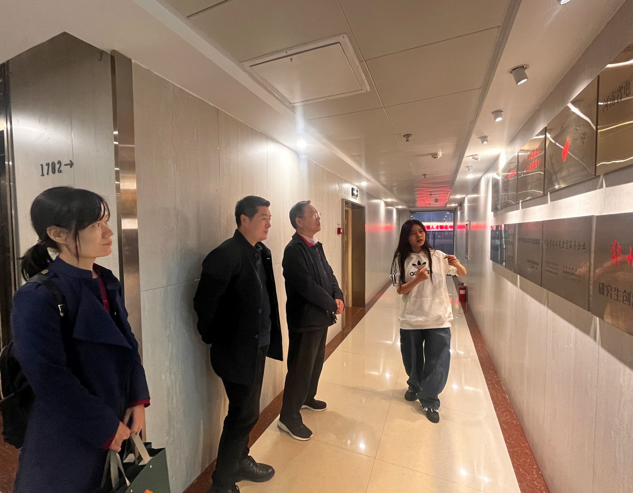 张金安一行参观了企业办公环境,深入了解公司在跨境电商智能营销、独立站建设、全球数字推广等领域的技术实力与业务布局,与在易赛诺工作的升达毕业生亲切交流,鼓励大家好好工作,发扬升达精神,并合影留念。