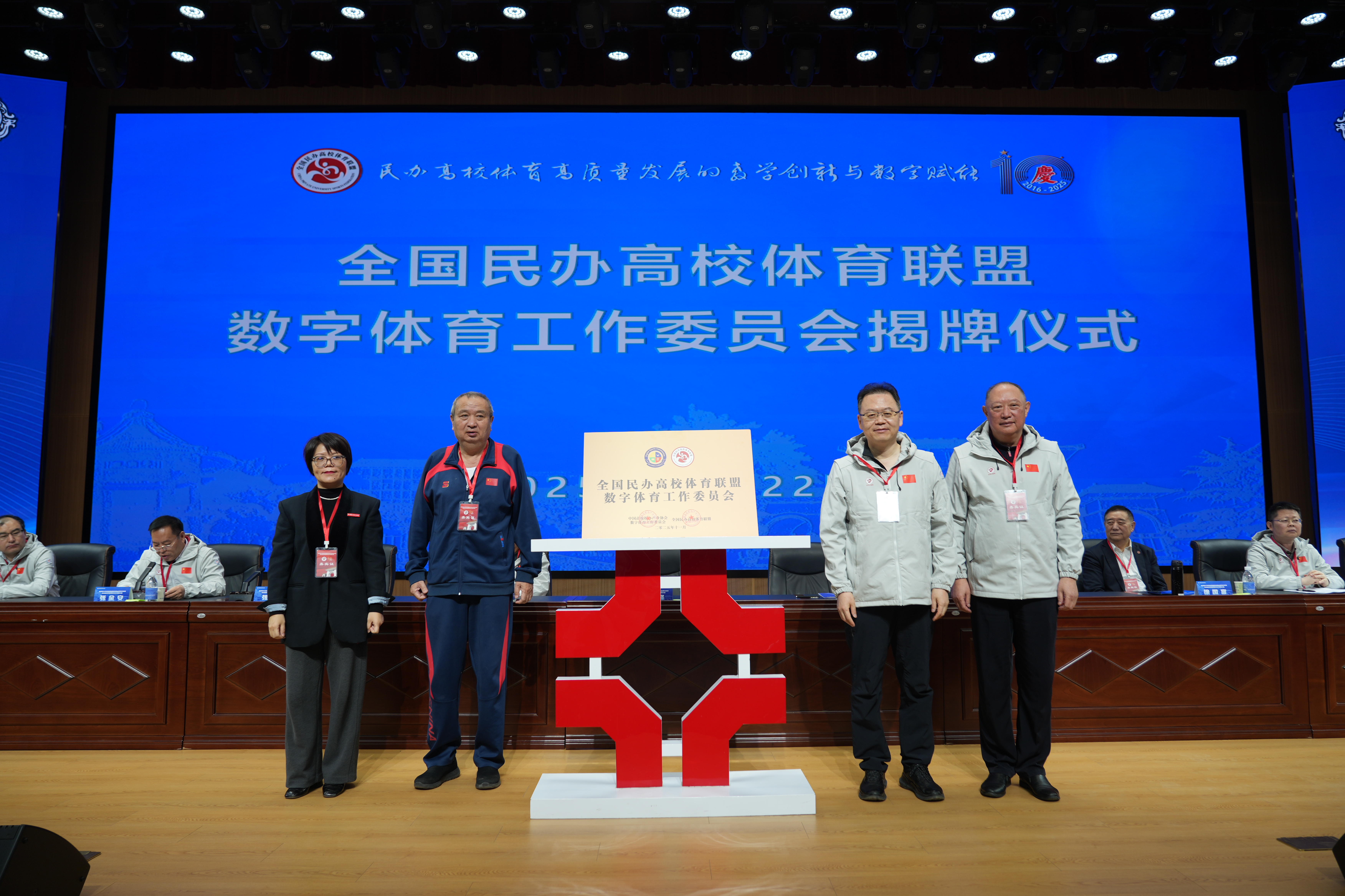 开幕式上,池建、任锋、姜波、张欣为新设立的全国民办高校体育联盟数字体育工作委员会揭牌,这标志着民办高校体育数字化建设迈出了坚实的一步。