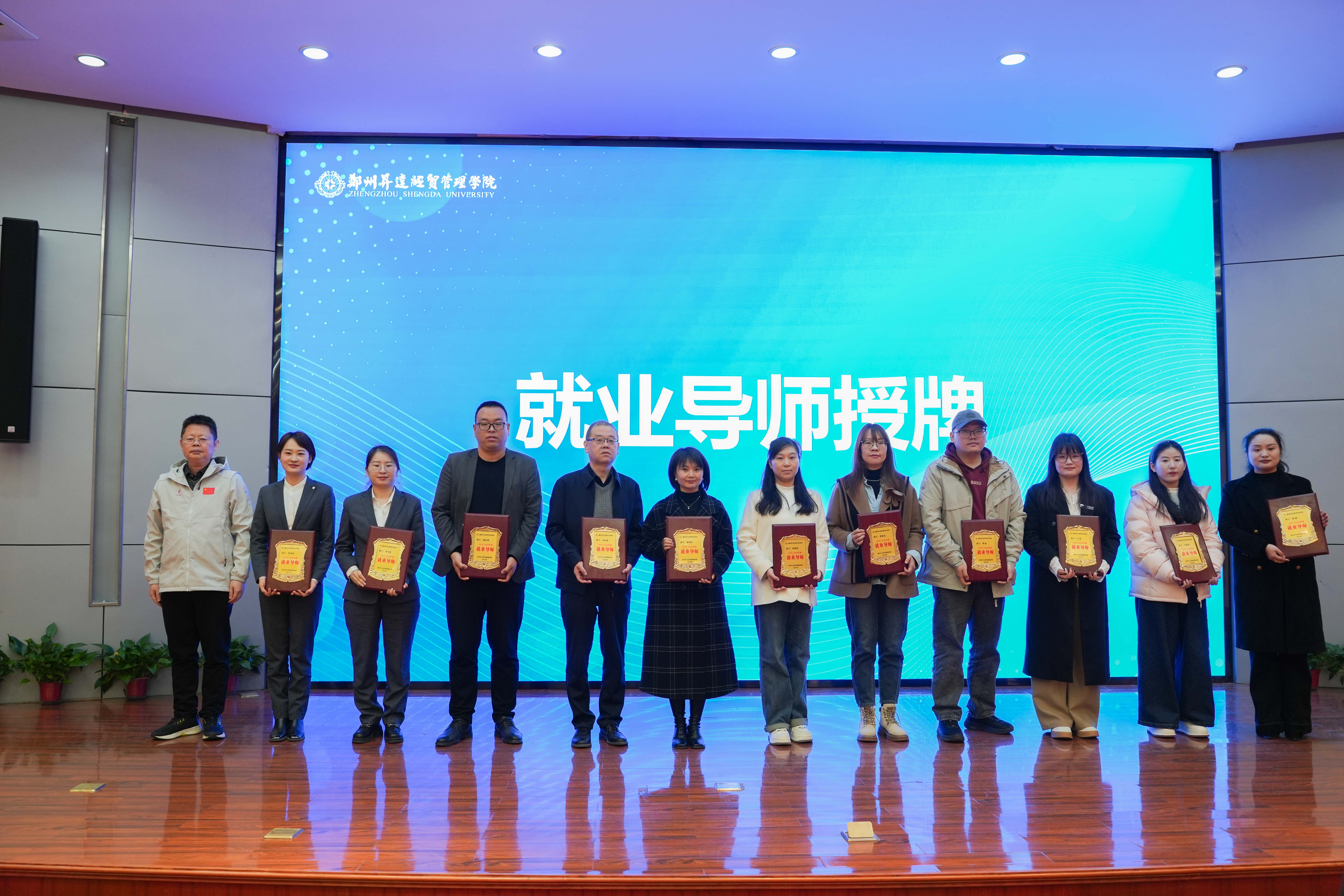 在就业导师授牌环节。张其武代表学校为参会企业代表颁发就业导师聘书,聘请各企业负责人担任学校就业导师,助力学生职业规划与就业指导工作,进一步夯实了校企协同育人的合作基础。