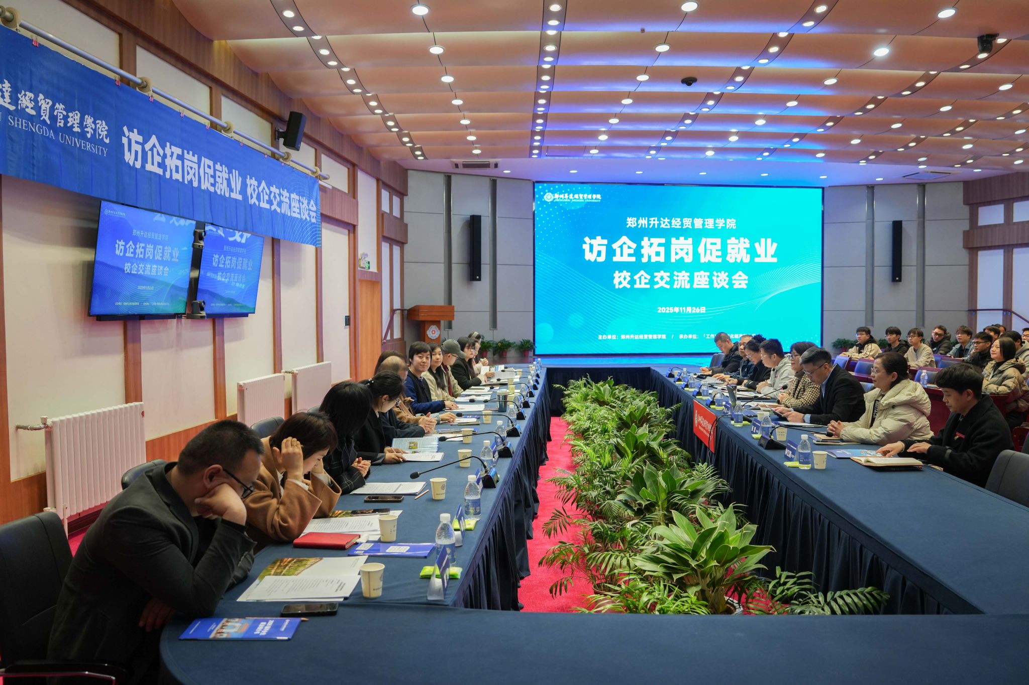 为深入贯彻落实国家关于高校毕业生就业工作的决策部署,深化校企协同育人机制,拓宽毕业生就业渠道,精准对接企业用人需求,11月26日我校成功举办访企拓岗促就业校企交流座谈会。工作啦、uu跑腿、郑太可口可乐、嗨购科技集团、巴奴、正弘物业、核桃编程、西点教育、丽之健等多家企业负责人受邀参会。我校校长、党委副书记张欣,党委委员、副校长张其武以及就业处处长冯科、金融贸易学院党委书记张小雁、会计学院党委书记张蕾、管理学院党委书记职正路、信息工程学院党委书记钟江鸽、体育学院党委书记韩炎涛,就业处工作人员,相关二级学院就业专员和求职毕业生代表们参加了此次座谈会。