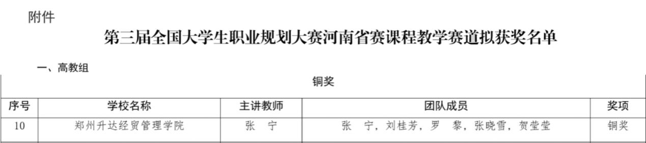 2025年11月22日至23日,由河南省教育厅主办,河南经贸职业学院、河南省大中专学生就业服务中心承办的第三届全国大学生职业规划大赛河南省赛教学赛道决赛隆重举行。我校创新创业教育学院教师张宁、刘桂芳、罗黎、张晓雪、贺莹莹组成参赛团队入围决赛,与全省100支优秀教学团队、600余名教师同台竞技,全方位展现我校职业规划与就业教育教学成果。