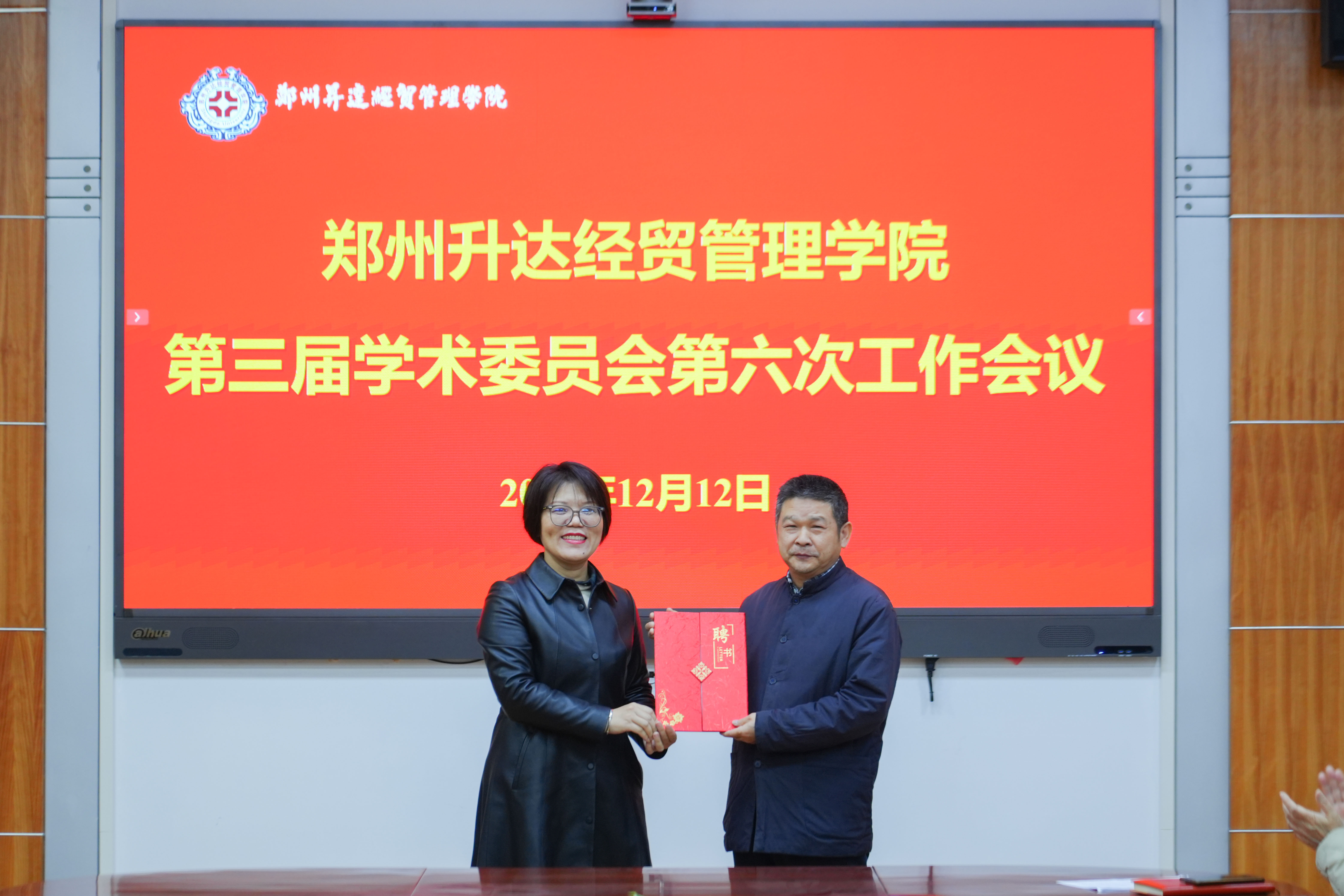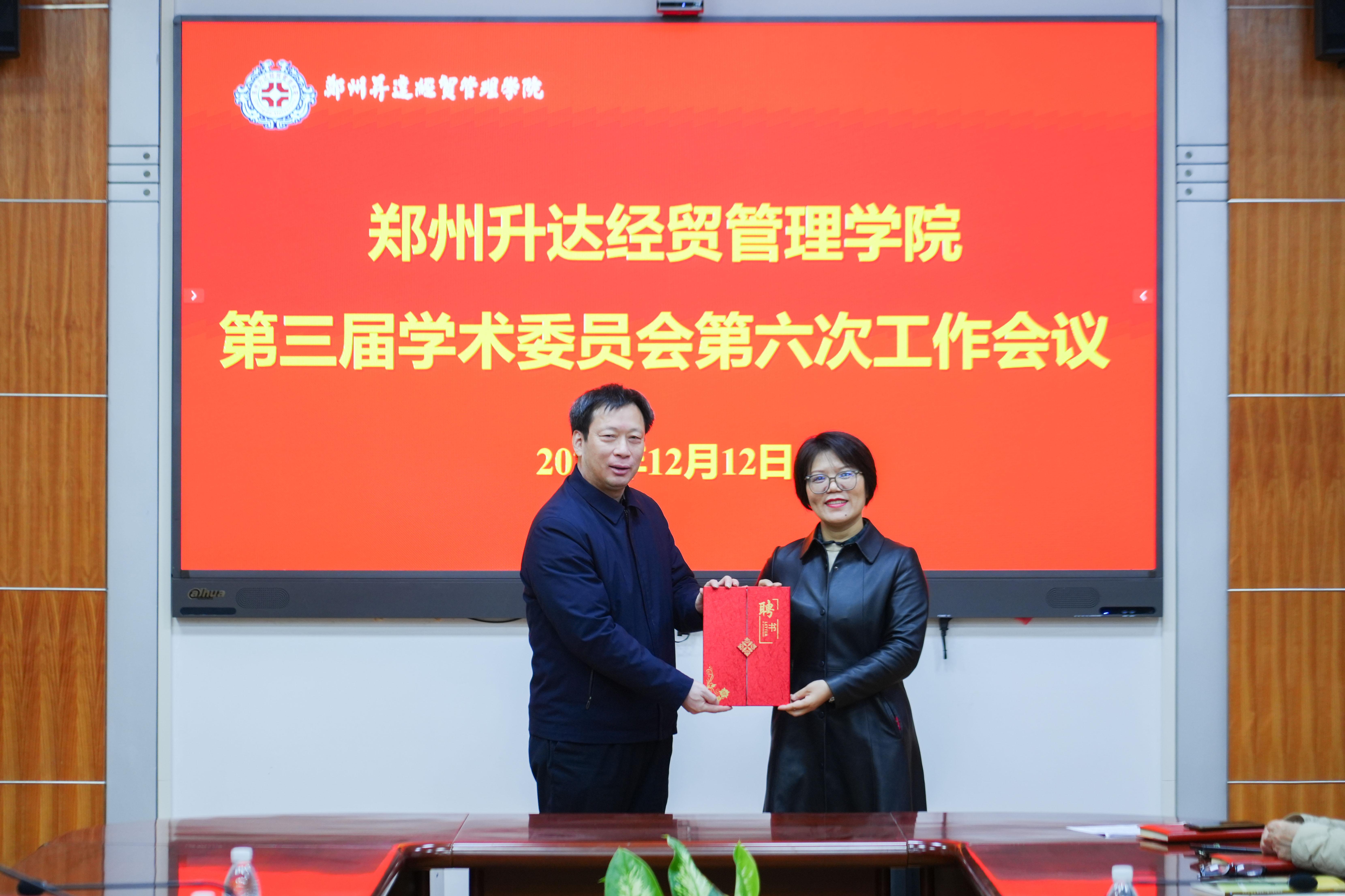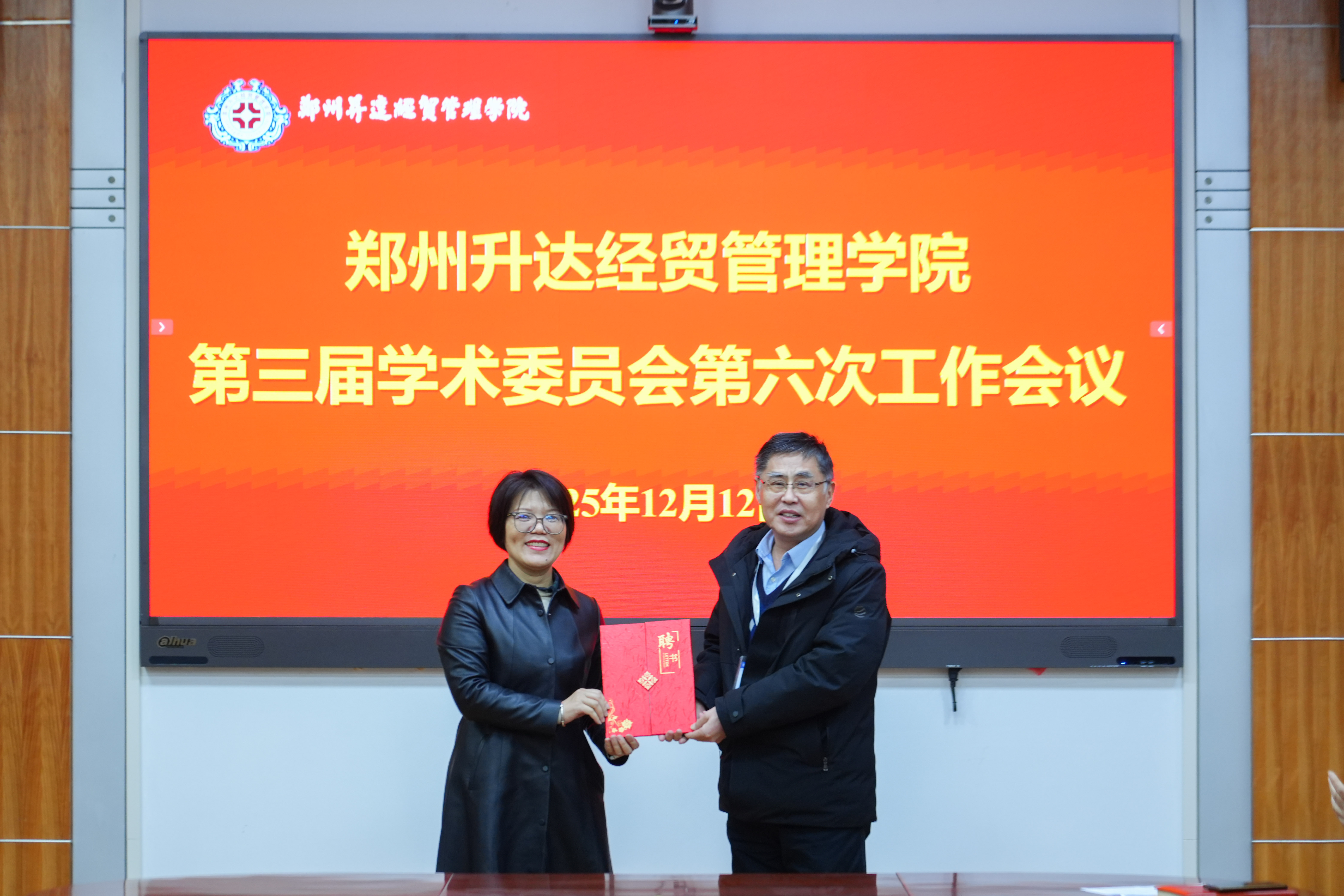 会议审议并通过了《郑州升达经贸管理学院学术委员会章程》修订案,为适应学校学术发展需要,优化委员会结构,会议决定增补副主任委员、委员共三人。会议期间,张欣校长向新任委员颁发了聘书。