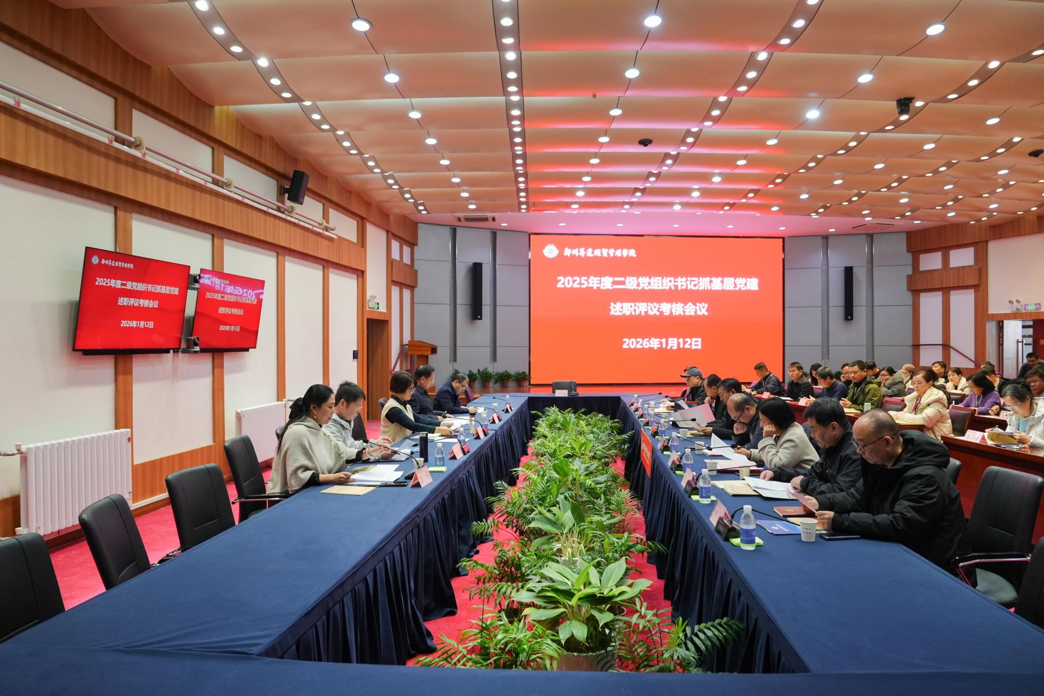 1月12日,学校召开2025年度二级党组织书记抓基层党建述职评议考核会。在校党委委员,党委职能部门负责人,二级党组织(党工委)书记、副书记和组织员参加会议。会议由校党委委员、组织部部长秦旻主持。