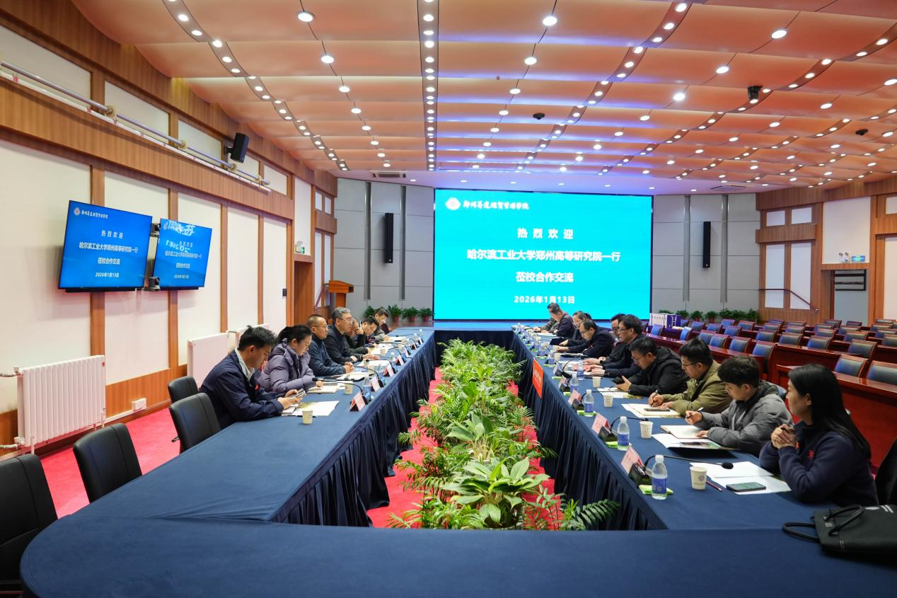 会议伊始,校领导代表学校全体师生,对哈尔滨工业大学郑州高等研究院一行的到来表示热烈欢迎。哈尔滨工业大学郑州高等研究院在科研创新、人才培养等领域成果卓著,此次座谈会为两校搭建了宝贵的交流平台,必将推动双方资源共享、优势互补,开启协同发展新篇章。随后,与会人员共同观看了我校专题片,全方位了解学校的发展历程、办学特色与未来规划。