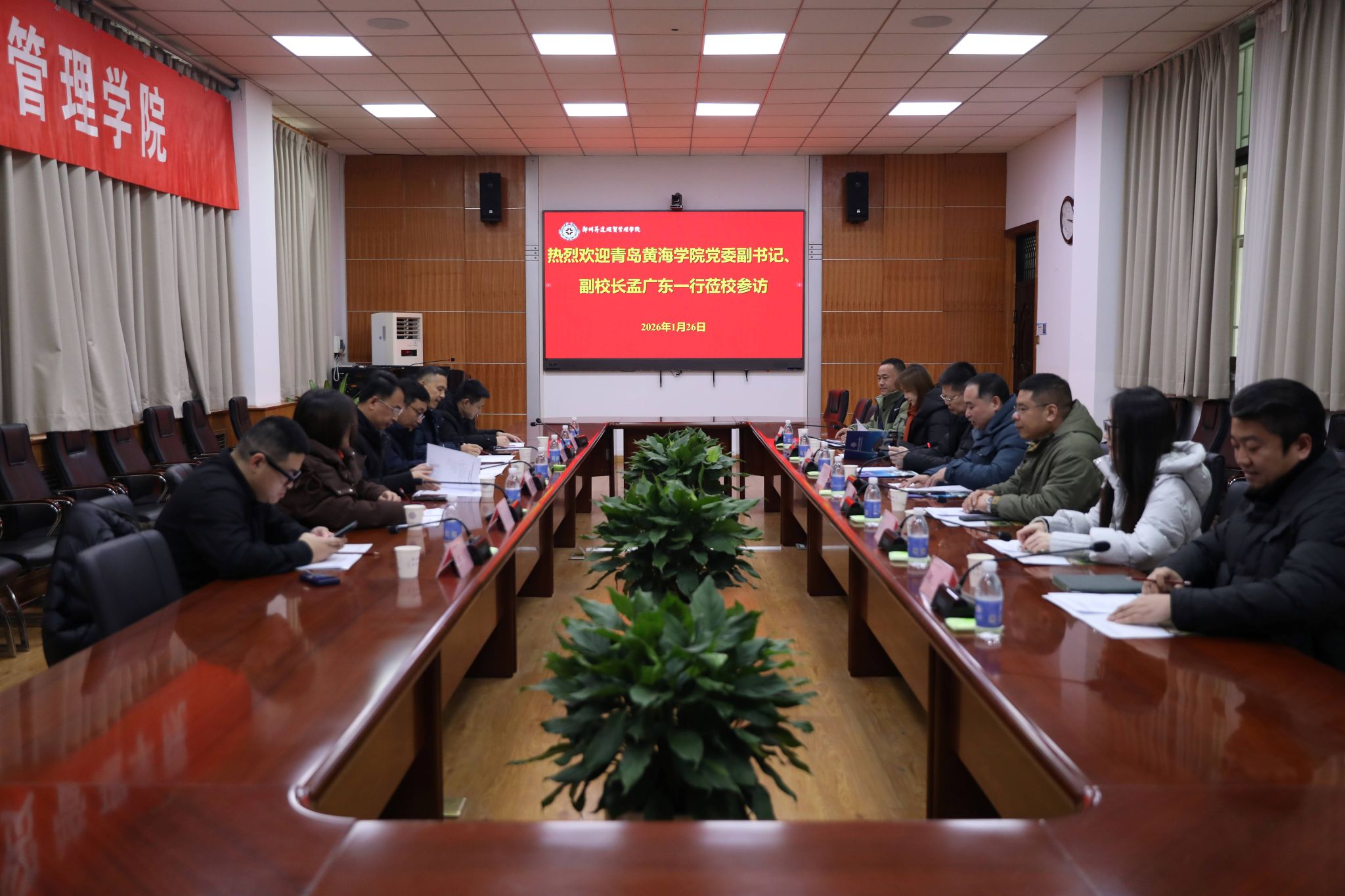 1月26日下午,青岛黄海学院党委副书记、副校长孟广东一行6人莅临我校参访交流,我校党委委员、副校长张其武以及相关部门负责人在行政楼第二会议室热情接待了来访嘉宾。座谈会由教学质量监测与评估中心主任罗秉鑫主持。
