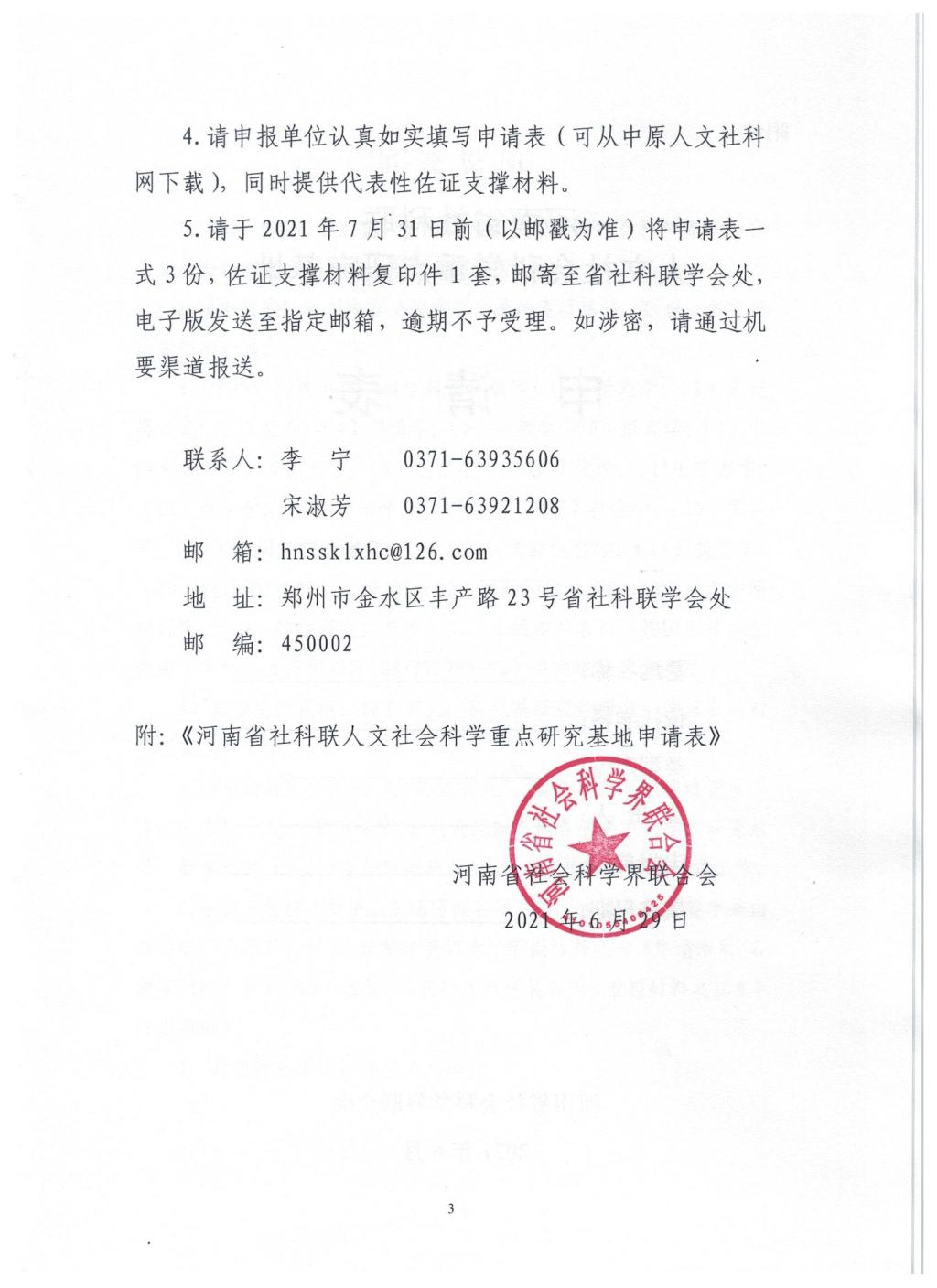 同时将材料电子版打包上传至我校云平台端口(上传路径为:进入云平台—我的项目—校内申报—2021年度河南省社科联人文社会科学重点研究基地申报—新增—填写信息并上传附件)。