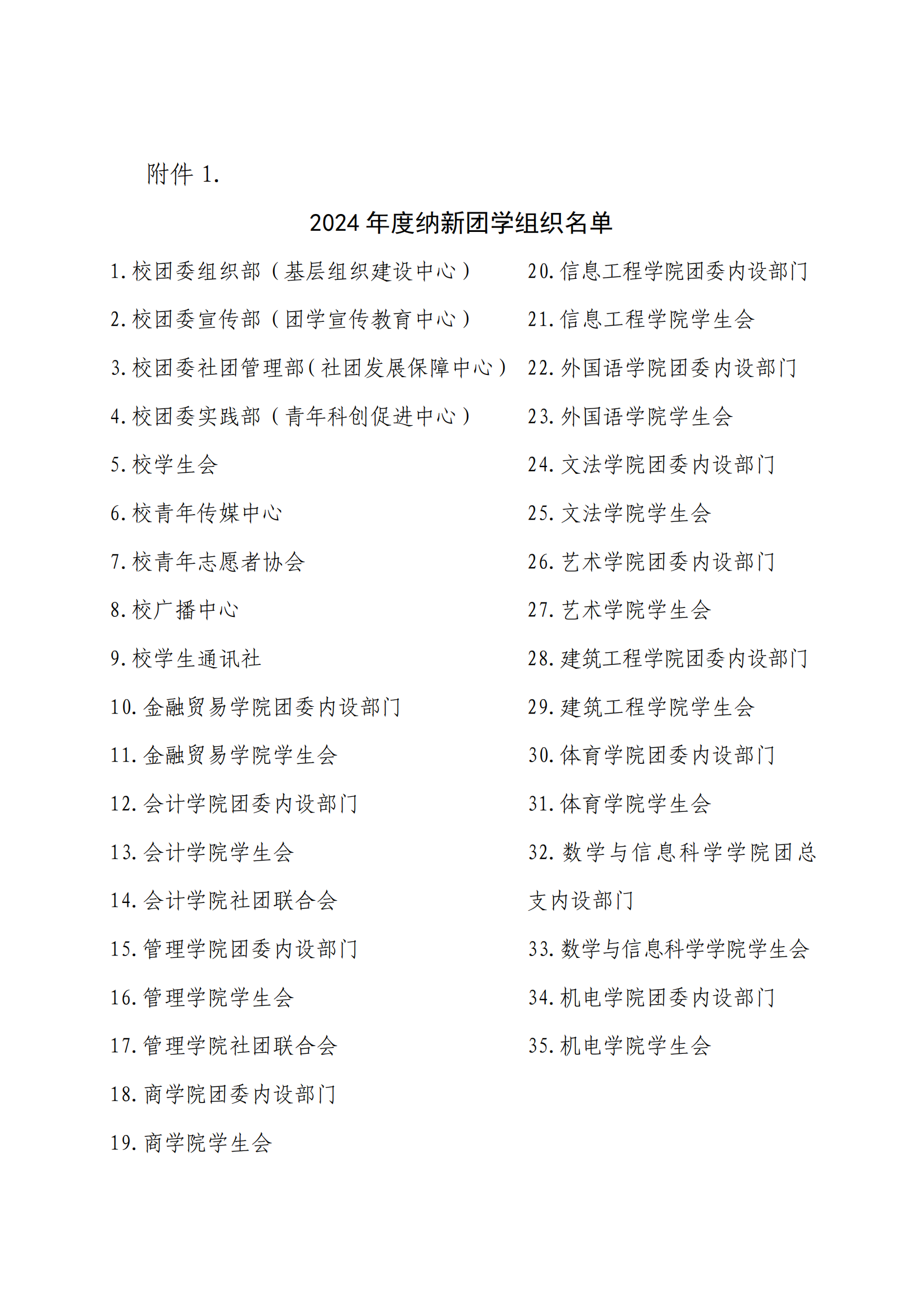 1.可纳新的团学组织,是指经过校团委审核成立并注册备案的校、院团学组织(名单见附件1)。