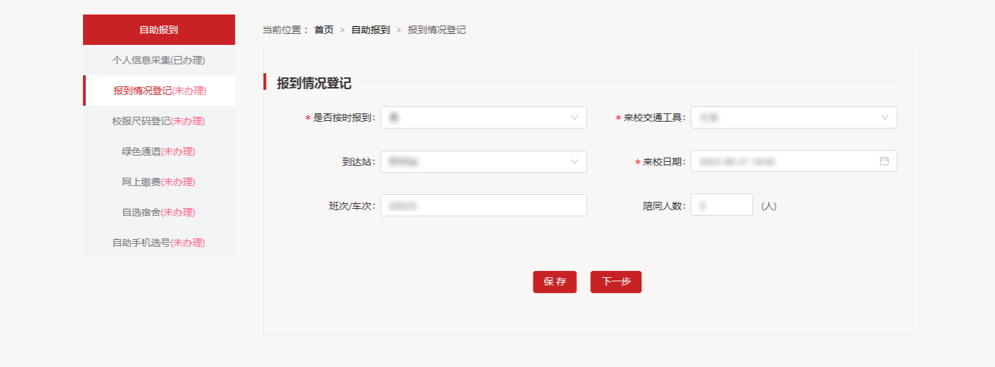 1、自助报到各环节必须依次填写,其中个人信息采集、网上缴费和自选宿舍为必办环节,“自助报到”通过“已办理或未办理”显示各环节办理情况。