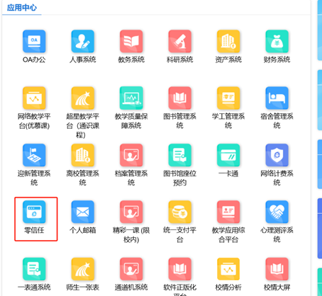 2.登录智慧校园,在应用中心选择“零信任”VPN。