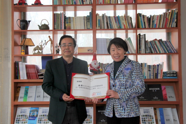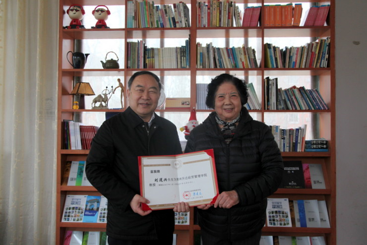 座谈会开始之前,在一片掌声中,学院董事长向刘道兴研究员颁发升达学院教授聘书,郭院长向陈强副站长颁发王广亚教育思想研究中心顾问聘书。