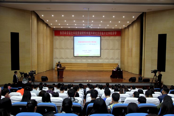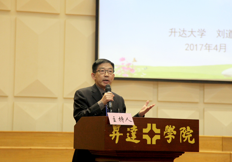报告会上,刘道兴院长由孔子一生追求的教育理想“有教无类、因材施教”来推及我们的教育实践家——王广亚博士,指出拥有王广亚是我们升达的骄傲,升达大学拥有创办人王广亚,就是拥有一段历史,一部大书,一个传奇,并展示创办人各个时期的图片让我们感到创办人仿佛还在身边。接着,刘道兴院长将创办人出生艰苦的岁月、曲折的求学经历,及王广亚博士在台湾如何缔造了民办教育的王国,王广亚博士回到家乡,回馈桑梓,创办我们升达大学,都进行了详细的阐释。在总结语中,刘道兴院长说,创办人的办学精神境界、教育动力之源、丰富的育人实践,更深层次的原因和力量,在于他对中华传统文化特别是孔子教育思想的深邃认知,在于他对教育发展与振兴中华密切关系的切身体悟,在于创办人对人生终极意义的探索,是大爱的具体体现。刘道兴院长的这场报告语言幽默诙谐,感情丰富诚恳,现场气氛厚重中又有激越,掌声持续,师生获益颇丰。