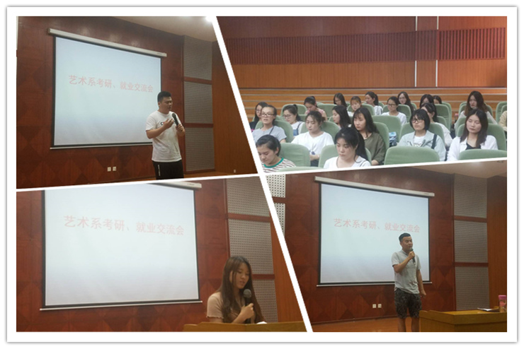 会议伊始,行政秘书曹华莹老师就艺术系2017届毕业生的就业情况和考取硕士研究生的情况进行了讲话,指出了当前的就业形势以及我系在考研和就业方面取得的成绩。接着,分别请出了今年的就业典型和考研典型的代表们发言,就他们各自的就业和考研经验给在座的大三学生进行了详细的经验交流。