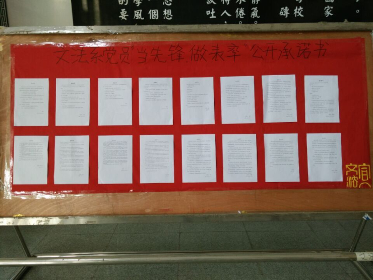 撰写学习心得、公开张贴承诺书,亮明了党员身份,明确了职责任务,得到了全系师生党员的积极拥护,同时大家也表示在“当先锋、做表率”后续活动中、在迎评促建的每一个日日夜夜里都要起到模范带头作用,为学院和文法系更加美好的明天贡献力量。(供稿人:张明奇)