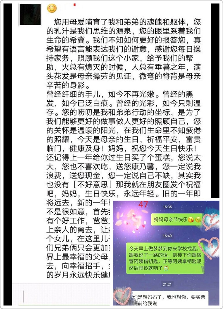 在5月8日-16日,在会计系心理辅导站的指导下,会计系心航路社团组织本系学生向母亲以发信息的形式表达自己对母亲的爱,并鼓励同学们将短信或者微信截图大胆晒出来参加评选,期间共有500余名同学参加了此次大赛活动。